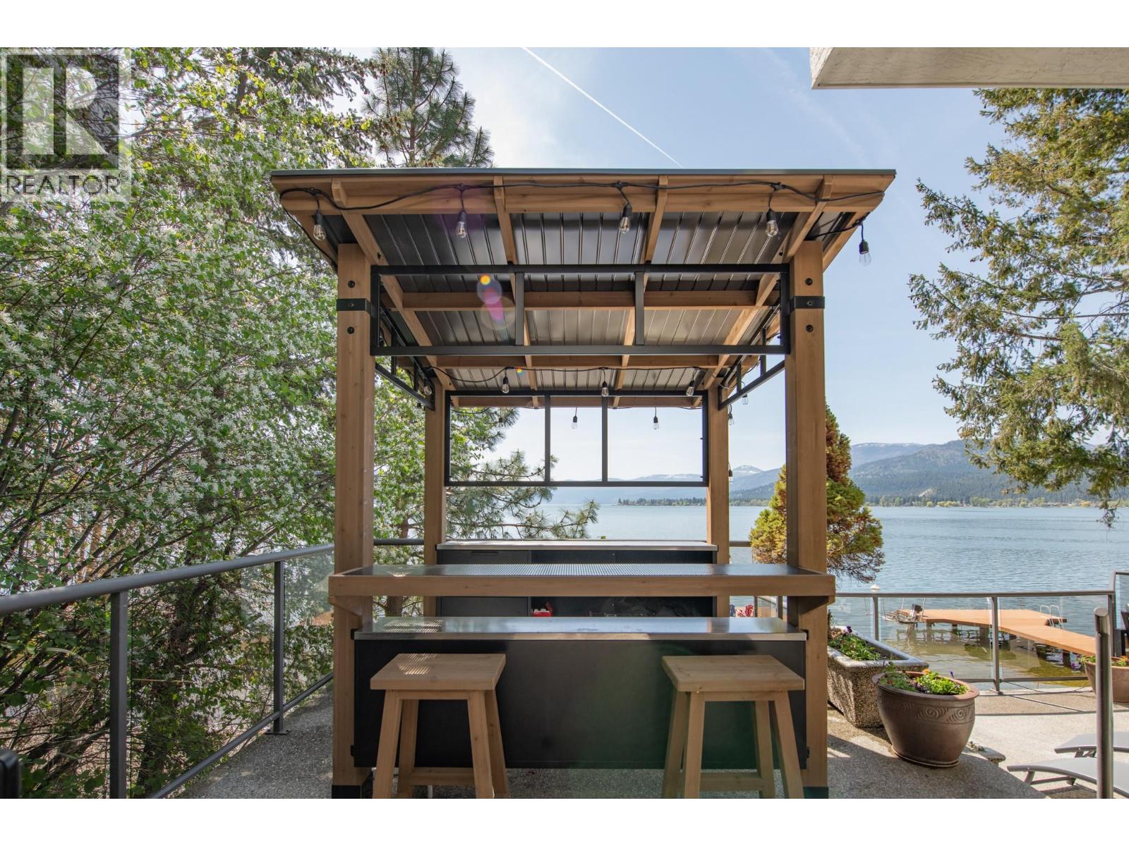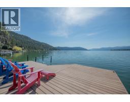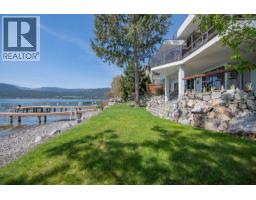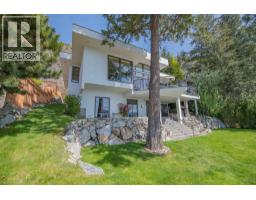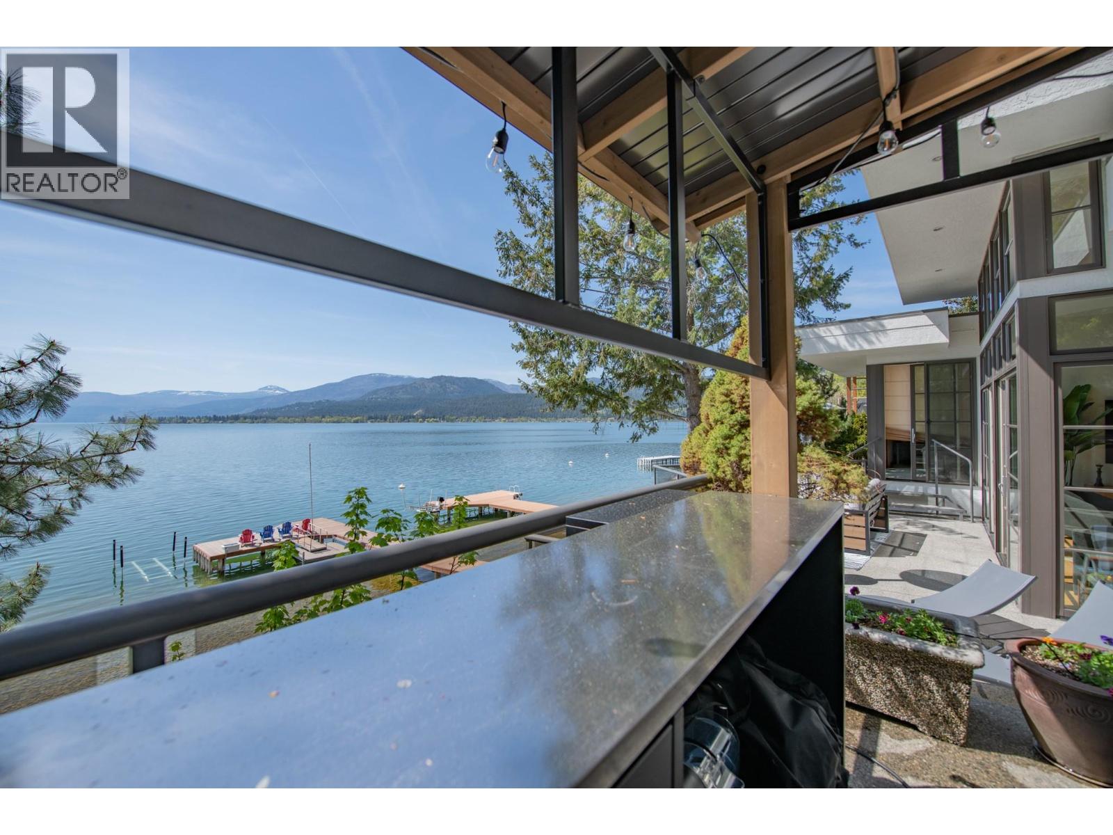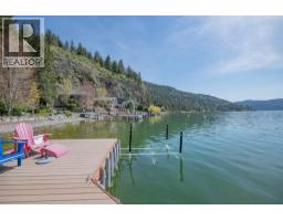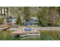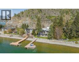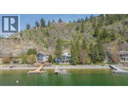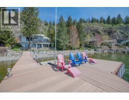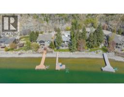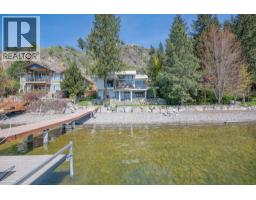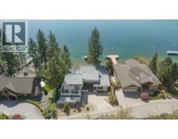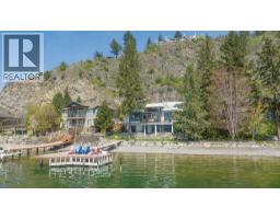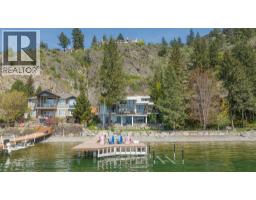 $125 MonthlyWelcome to your dream waterfront retreat in the exclusive Peregrine Shores! This stunning home boasts luxury and privacy behind secure gates, offering breathtaking south-facing Okanagan lake views from expansive sun and shade decks. Enjoy summer days entertaining or relaxing on your private dock, featuring 70 feet of swimmable beach and deep water ideal for boating. The beautifully manicured grounds include ample parking and an oversized two-door garage for convenience. Inside, experience a blend of contemporary design and traditional comfort, with exceptional millwork, hardwood floors on the main level, polished heated concrete downstairs, and elegant European-inspired tiled baths. The open floor plan and floor-to-ceiling windows showcase lake views throughout. The main level features the primary bedroom and a well-appointed office, while the lower level provides two additional bedrooms. Guests will love the upper-level studio with a wet bar, full bath, and private pergola deck. An elevator connects all levels for seamless accessibility, making this home perfect for everyone. As one of only 17 luxury homes in the prestigious Canadian Lakeview neighborhood, this property is a true lakeshore oasis. Don’t miss your chance to own this exceptional home! Contact us today for a private viewing. (id:26472)