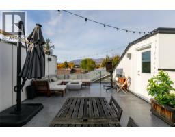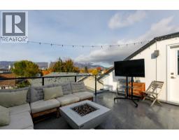 Modern lines and classic shades set the stage for this property. Located just a short walk from downtown Kelowna, this spacious home has been finished to the highest standard. No detail has been overlooked. As you enter the foyer, you immediately notice the custom fireplace and beautiful gourmet kitchen in the great room. Quality appliances, quartz counters, a large central island with a wine fridge, and even a gas stove make this kitchen perfect for entertaining, and the expansive living area offers direct access to your main floor patio as well. A large powder room and an oversized single garage with 220V power round out the main floor. Stairs leading down to a 5ft crawl space provide for easy access to abundant storage as well. Climbing to the second level, you immediately notice the double master bedrooms—each with their own generous ensuites and spacious walk-in closets. A laundry room is also found on his level. Finally, you make your way up to the third floor and are impressed by the gorgeous mountain views from the vast rooftop patio. If all of that wasn't enough, this property also doesn't have any strata fees! (id:26472)