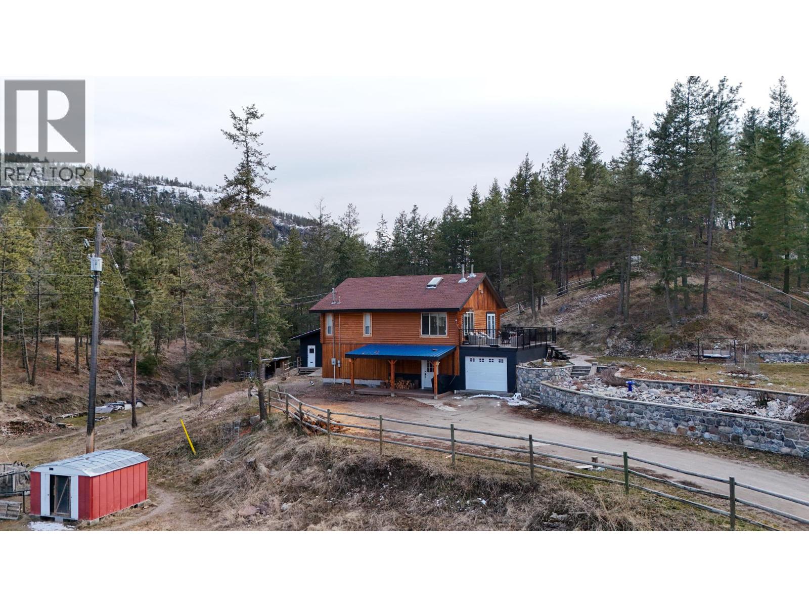 Welcome to 105 Saddlehorn Drive! Experience the peace and quiet of Kitley Estates. This 3 bedroom, 2 bath log home is on a large 3.58 acre lot. A fence runs around the lot, with a tack room, horse shelter, chicken coop, a single garage, apple, cherry, and peach trees, and a large garden area. In the last few years, the sellers have: installed a 50 amp RV hookup, along with an RV septic hookup, had the exterior of the logs on the home professionally refinished, 2 new blaze king wood stoves professionally installed, Water filtration system, new appliances (except fridge), hot water tank, lighting, paint, new deck sheeting above garage, and new duradeck. You're just minutes from 2 golf courses, numerous wineries, hiking, biking, horseback riding trails, and 20 minutes from Penticton. Measurements are taken from an iguide, and are approx. and based on the exterior of the home. (id:26472)
