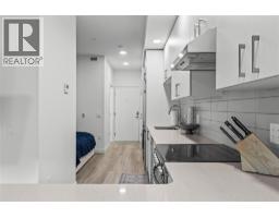 406 sqft studio at Ascent, in Kelowna's Upper Mission feels more like a one-bedroom condo, where the bedroom space is separate from the living area. Approximately 406 sq ft, this studio condo blends open living with thoughtful separation, where the sleeping area is offset from the main space for added privacy. Vinyl plank floors anchor the bright interior, while the kitchen features stainless steel appliances, an L-shaped quartz countertop, and bar seating that connects naturally to the living area. Clean lines, modern finishes, and a comfortable flow make the most of every square foot, with in-home laundry adding everyday ease. Step out from the living space to a nicely sized patio, ideal for quiet mornings or winding down in the evening. One surface parking stall is included, and residents enjoy access to a well-equipped community centre with a gym, lounge, games area, and kitchen for social gatherings. Set in sought-after Upper Mission, this location sits directly across from Mission Village at the Ponds, offering Save-On-Foods, Shoppers Drug Mart, Starbucks, Bosleys, and more just steps away. A great fit for first-time buyers or downsizers seeking low-maintenance condo living in a connected, amenity-rich community. (id:26472)