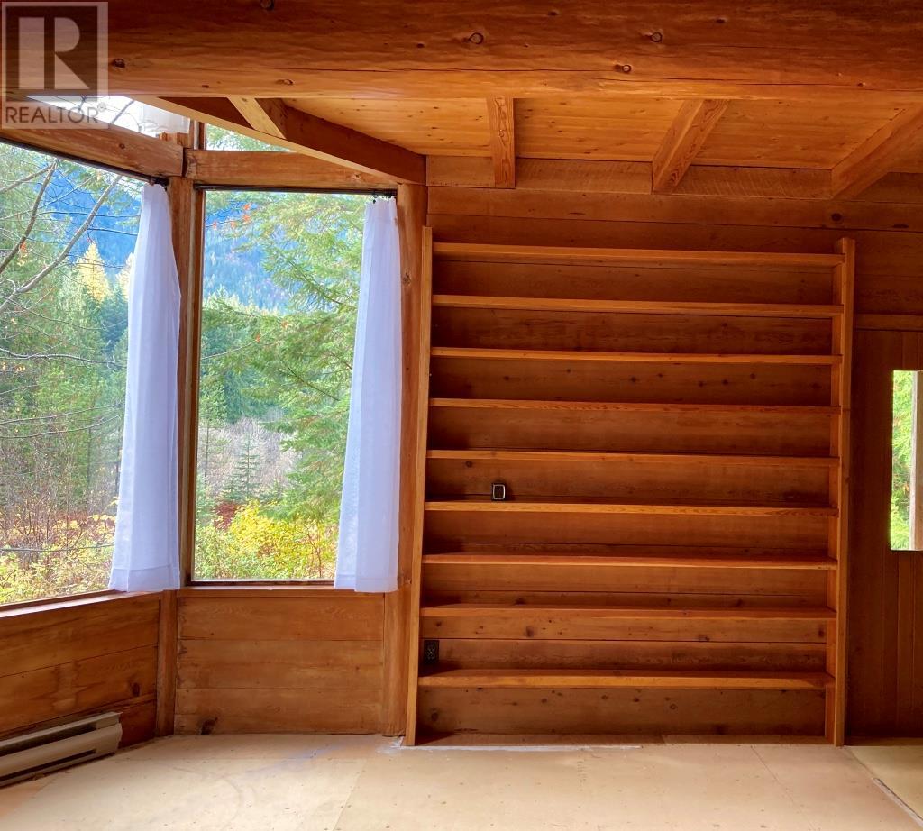 2 Story country charmer Nestled on a flat 12.1 acres of forested land with small meadows throughout. Floor to Ceiling windows with exposed beams, all overlooking yard with oak and evergreen trees. Airy and spacious open plan. Main floor with expansive living room, dining and kitchen with a brick, double chimney in the center; wood stove on one side and fire place insert on the other complete with dumbwaiter to bring wood up from basement. New large, full bathroom/shower and Laundry also on main floor all with new sinks , toilets lighting. Upstairs floor, also with floor-to-ceiling windows, sliding glass doors, bright and light-filled rooms with exposed beams. Open plan family room/den and master bedroom with spectacular views. Two additional large size bedrooms. Upstairs also has full bathroom with pedestal tub and laundry chute to downstairs laundry. Shady, covered Full back porch overlooking mountains. Separate closed-in front entrance. Note, renovations include new sinks, toilets, fixtures, lighting, etc. Currently being shown without new floors installed, giving the buyer a chance to install a different flooring. Otherwise, the current new floors will be installed prior to sale. Breathtaking views of mountains and forest. Meadow fields run alongside non-motorized Walk Bike-Ski Rails to Trails, and Bonanza Creek. Licensed water supplied by well and additional license for irrigation from Bonanza Creek. This very unique property is beautiful, tranquil and teeming with birds and wildlife all year round. Must be seen to be fully appreciated. Shopping amenities, hospital, optometrist and medical clinics nearby with New Denver 15 minutes and Nakusp 25 minutes away. Satellite/TV/internet/Telephone all available. Short, private driveway at the end of Government maintained road. (id:26472)