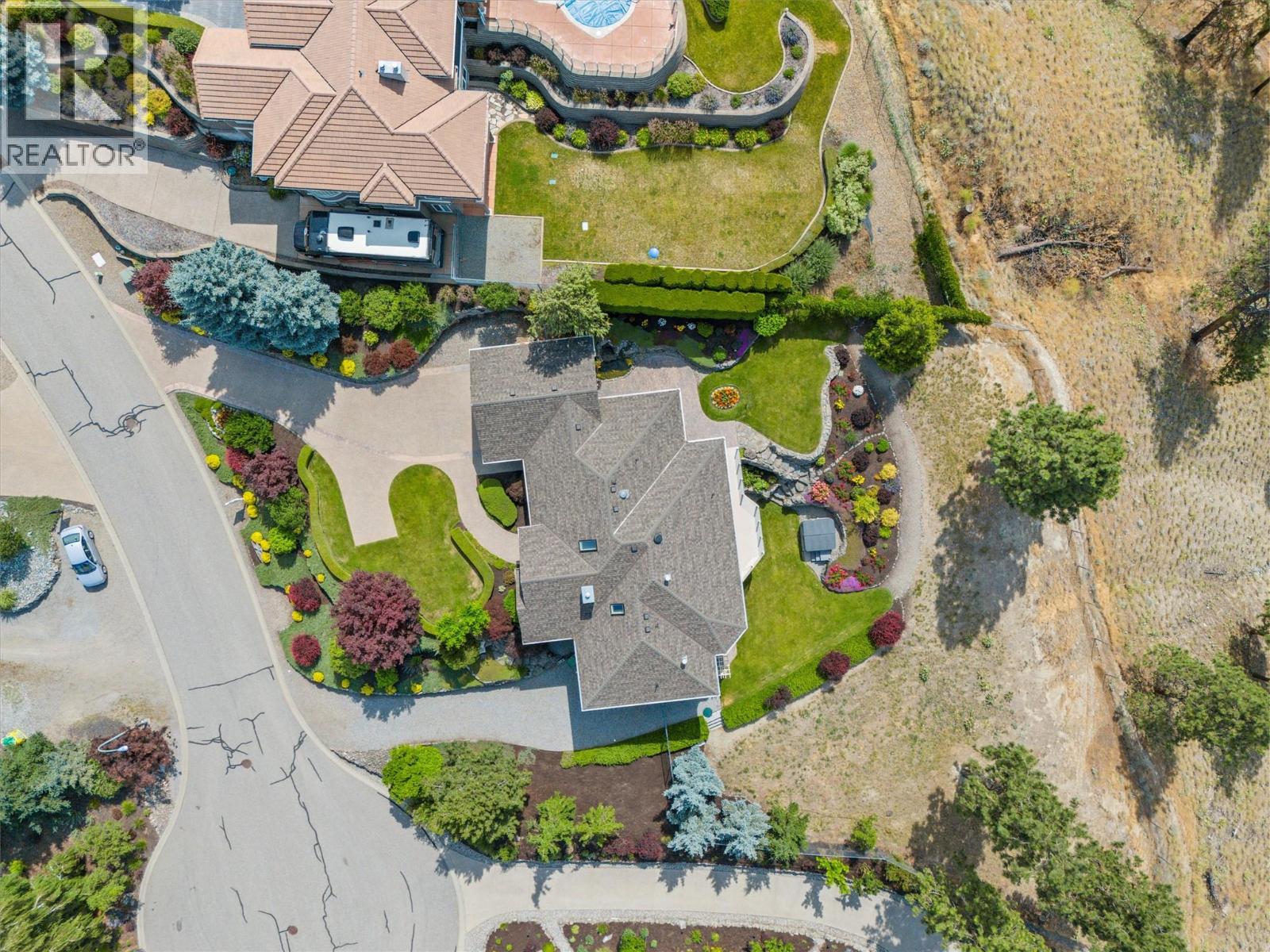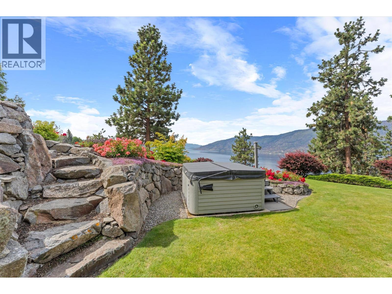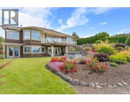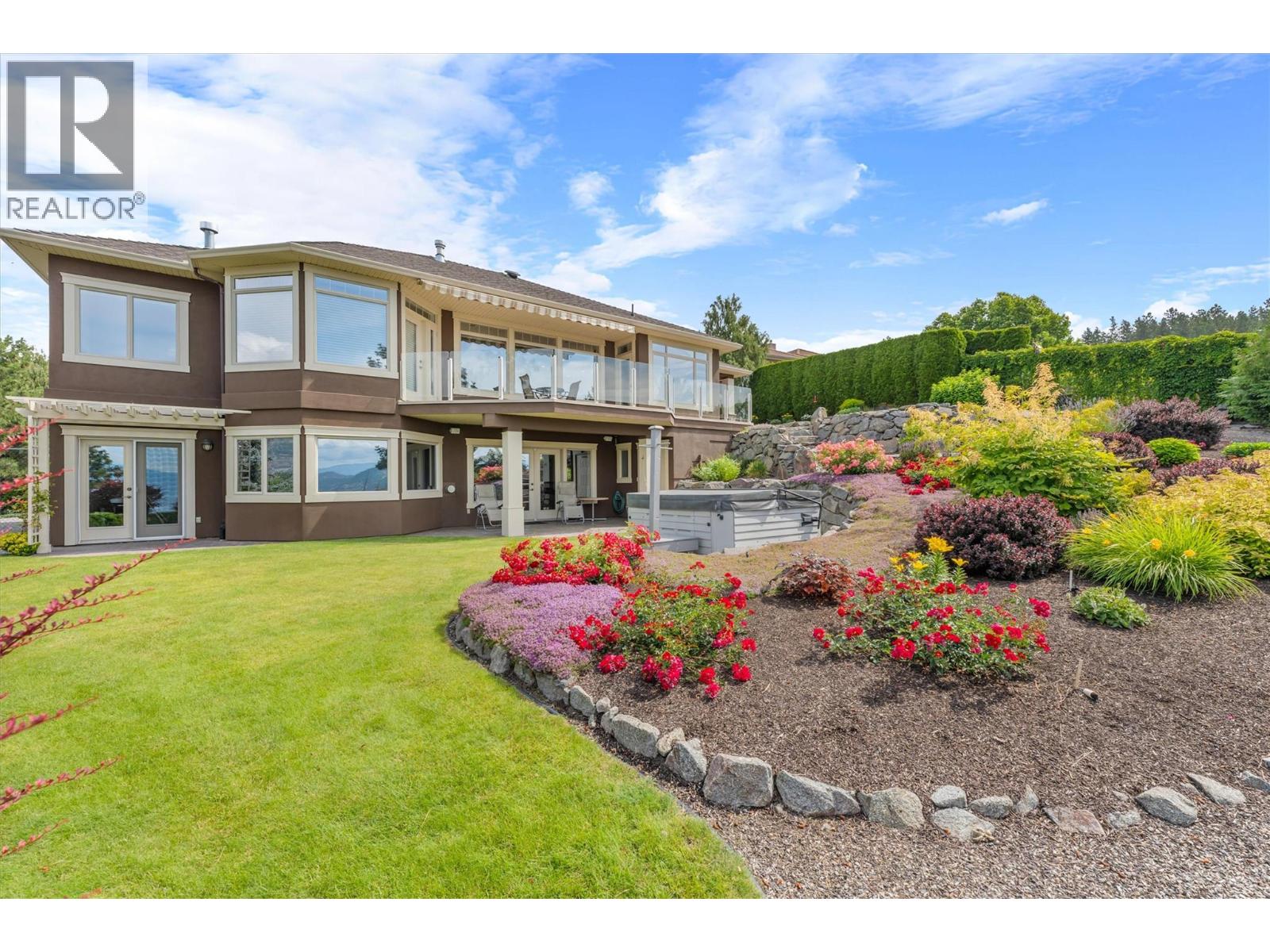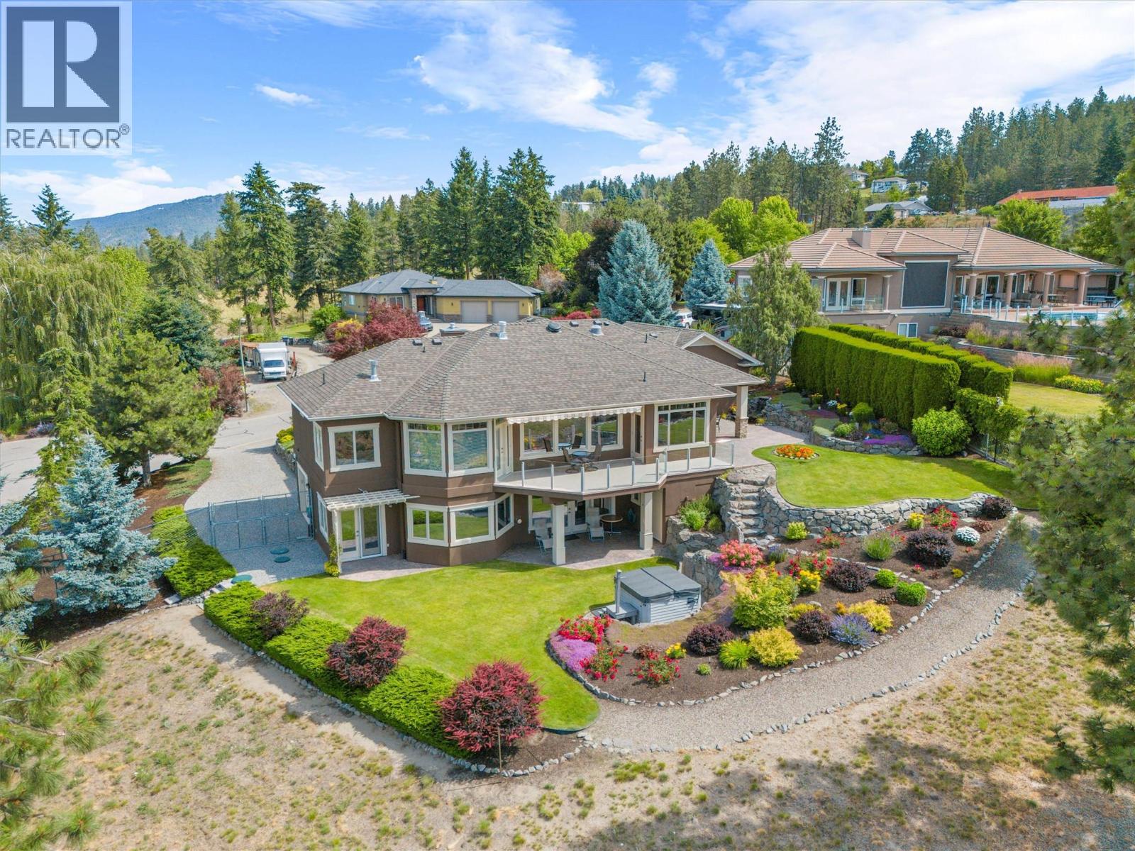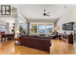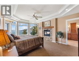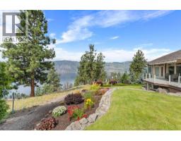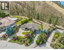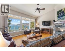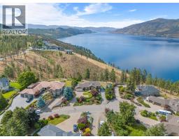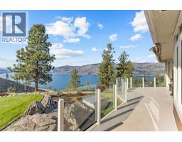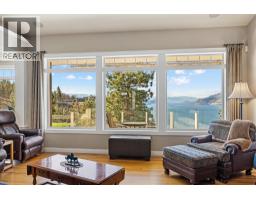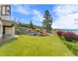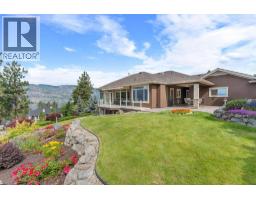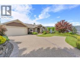 $1,450 YearlyWelcome to The Pointe, an exclusive and tranquil community just north of Lakestone in Okanagan Centre. Capturing breathtaking south-western lake views, this 3,365 Sq.Ft. walkout rancher offers an exceptional blend of serenity, elegance and indoor–outdoor living. Set within a perfectly manicured lot, the property is a true private retreat complete with impressive rock walls, handcrafted staircases and a fully fenced back yard with hot tub, soothing water feature and an expansive covered patio, perfect for relaxing afternoons or sunset gatherings. The main level features a bright open-concept dining and living space with vaulted ceilings, anchored by a gas fireplace framed in stone with a rich wood mantle. Solid oak hardwood floors extend throughout, complementing the chef’s kitchen equipped with granite countertops, gas cooking and an adjacent prep area perfect for hosting with ease. A generous skylit foyer leads to two beautifully appointed bedrooms on this level, including the primary suite. The ensuite showcases a two-way fireplace, soaker tub, heated floors and spacious walk-in closet with direct access to the laundry room. A walkout basement with expansive windows seamlessly connects the interior to the outdoor oasis. A large recreation area with wet bar offers the perfect setting for entertaining, while a sound-proofed media room and temperature-controlled wine storage enhances the home’s sophisticated amenities. An office or additional bedroom provides a welcoming space for guests, complemented by a versatile den ideal for use as a massage or fitness room. Car enthusiasts will value the storage: a 220V double garage, plus a second single garage and workshop with its own driveway, and fully serviced RV site. Meticulously maintained and move-in ready, recent upgrades include a high-efficiency furnace, hot water tank and new roof. Minutes from award-winning wineries, boat launch and public beach, this remarkable property offers an unparalleled Okanagan lifestyle. (id:26472)