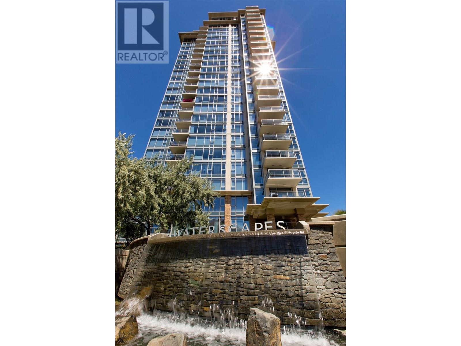 $566.41 MonthlyLIVE/WORK HIGH ABOVE the CITY, amidst expansive WALLS of GLASS, in the best LOCATION in WATERSCAPES’ SKYE building! Showcasing BREATHTAKING, UNOBSTRUCTED VIEWS of the BRIDGE, LAKE, MTNS & CITY, this split 2BD+DEN/2BA suite has TWO PARKING STALLS! Finishings include Shaker Cabinets, GRANITE counters, GAS RANGE & SS APPLS. Updates include NEW Flooring 2023, W/D 2024, and Refrigerator 2021! PRIMARY BDRM features spacious ensuite with BATH, SHOWER & DBL SINKS, as well as a generous W-IN closet. 2ND BD overlooks DECK with same spectacular LAKE views, a 2nd FULL BATH and DEN, offering the flexibility of an office or in-unit STG space, although a STG locker is included in parkade. Enjoy morning coffee or evening glass of wine while soaking up STUNNING VIEWS on the spacious covered balcony, providing a serene retreat in the heart of the city. Located in a sturdy CONCRETE building, flooding open-concept living spaces with natural light, with a sophisticated lobby and secured entry to each floor, this building has access to LUXURIOUS onsite amenities including: pool, 2 hot tubs, full equipped GYM, CLUBHOUSE with LOUNGE, KITCHEN, & BILLIARD tables, meeting rooms and several guest SUITES! Great location steps to the beach, bird sanctuary, Prospera Place ARENA, local dining, Rotary ARTS Centre and the CULTURAL DISTRICT! RENTALS: month to month PETS: 2 dogs, 2 cats or 1 of each. No vicious breeds. Simply put, one of the best valued units in the building! (id:26472)