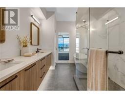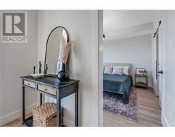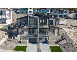 Welcome to sophisticated modern living with panoramic Okanagan views at The Ridge Penticton—a thoughtfully designed contemporary duplex offering over 2,000 sq. ft. of impeccably planned space across three luxurious levels, all seamlessly connected by a private elevator for ultimate convenience. Perched to capture breathtaking views of Skaha Lake and the Okanagan Valley, this home is a rare blend of modern elegance and everyday functionality. The top floor is a true showpiece—ideal for morning coffee or hosting stylish dinners against a stunning scenic backdrop. A versatile bedroom or den on this level provides flexibility to suit your lifestyle, whether as a guest suite, home office, or creative studio. The middle level features a serene primary retreat complete with a spa-inspired 5-piece ensuite with in-floor heating and a generous walk-in closet. An additional spacious bedroom with its own private 4-piece ensuite ensures comfort and privacy for family or guests. A well-appointed laundry room adds everyday practicality. On the ground level, enjoy your own private theatre room and powder room. Groceries are easy to bring in via level laneway access, and the 2-car tandem garage adds convenience. High-end finishes throughout include quartz countertops, luxury vinyl plank flooring, premium stainless steel appliances, and a curated modern lighting package. This is low-maintenance, high-style living at its finest. Embrace the Okanagan lifestyle in a home that truly has it all. (id:26472)