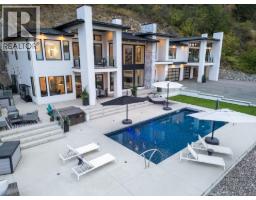 A turn-key, furniture-included offering. Discover the epitome of luxury living in the prestigious gated community of Beverly Hills Estates. Perched gracefully on an acre of hillside, this custom-built masterpiece offers breathtaking views of the lake, mountains, and award-winning equestrian stables below, and INCLUDES the adjacent, separately titled lot. However, the home or lot can be purchased separately from each other (ask agent for details). This turn-key property is offered fully furnished, complete with all kitchen utensils, appliances, linens, etc. making your move effortless. The home boasts two luxurious primary suites, each with custom closets and spa-inspired ensuites. The second primary suite features a chic wet bar and a custom-built bed strategically positioned to capture unobstructed views through floor-to-ceiling windows. The master suite add-on was a substantial $1,000,000 investment, recently completed, and includes a safe-room walk-in closet that was overbuilt with a metal locking door. At the heart of the home is a stunning great room framed by towering windows that open onto an expansive pool deck, perfect for entertaining with its hot tub, fire pit, and multiple outdoor living spaces—complete with an outdoor bathroom. The property also features an immersive home theater and fitness room. The oversized, heated, triple-car garage provides ample storage for vehicles and recreational equipment. Nearby amenities include the Vernon Yacht Club, Sparkling Hill Resort, Predator Ridge Golf and renowned wineries. (id:26472)