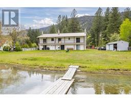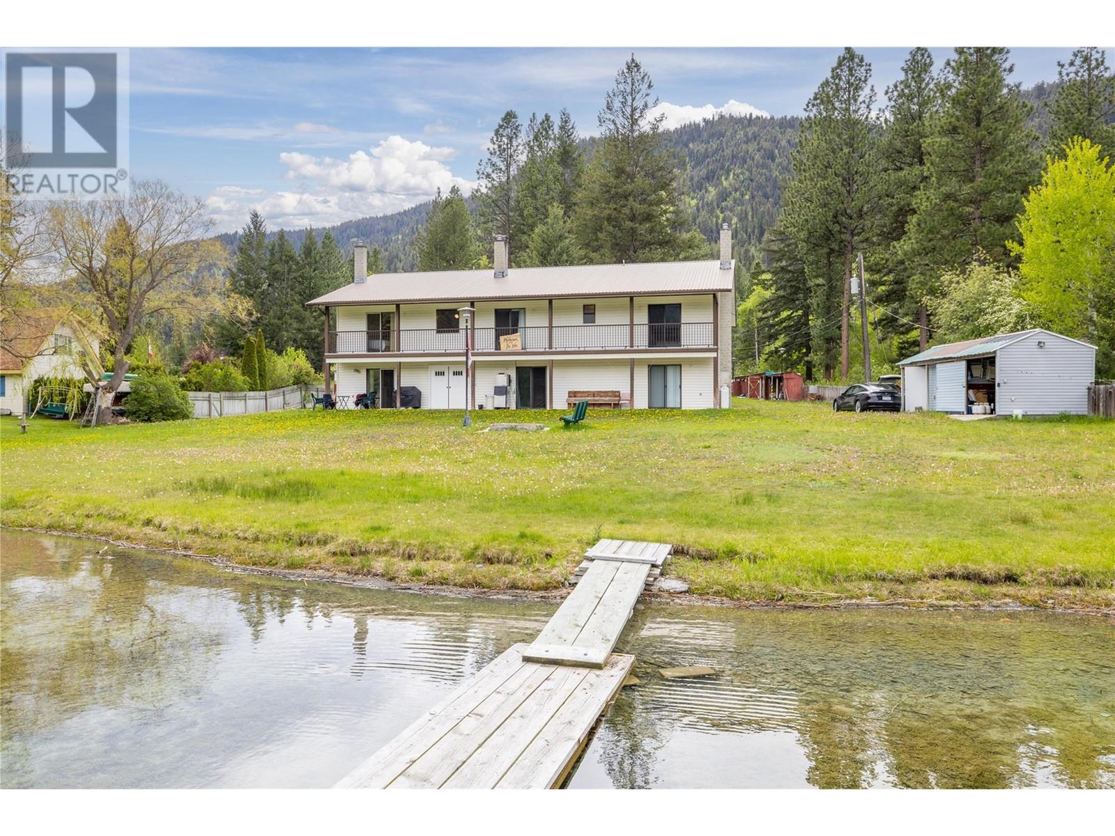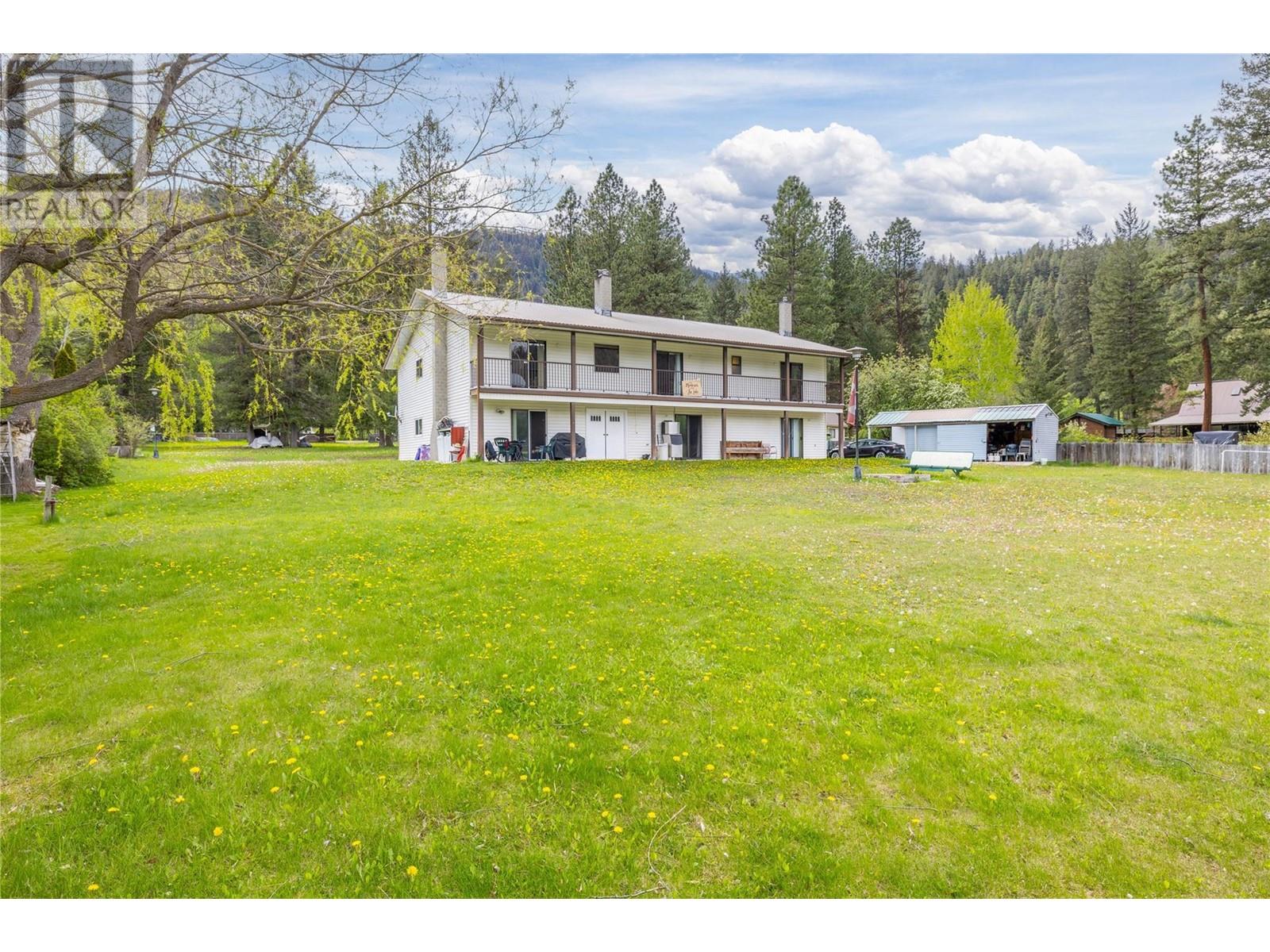 Breathtaking 9-bedroom, 5-bathroom family haven on 1.25 pristine lakefront acres of Round Lake! Designed with large families in mind, this unique home is divided into three distinct suites, each featuring a private full kitchen, dining area, cozy living room with a gas fireplace, and expansive patio doors leading directly to the lakefront. Upstairs, each suite boasts three bedrooms, a full bathroom, and access to a charming covered balcony overlooking the water. But that's not all—this property offers a remarkable outdoor environment too! The generous 1.25 acres is equipped with a powered 3-bay storage shed, a concrete-floored workshop, and a practical woodshed. Picture your evenings around the custom-built fire pit with benches, or enjoying the all-year dock, perfectly positioned for diving and lounging. There’s a 2-inch water line connected to the community’s gravity-fed system for irrigation, fire safety, or a refreshing splash for the kids. With the lake fully freezing in winter, you’ll have ice fishing and skating rinks to enjoy throughout the seasons! Located just 1.5 hours from Kelowna and 2.5 hours from the Lower Mainland, surrounded by miles of trails on Crown Land, Allison Creek, and stunning lakes. The water? It’s the most vibrant blue-green you’ll find anywhere. This is more than just a home; it's an incredible investment opportunity with versatile income potential through the three separate suites! Don’t miss out on this once-in-a-lifetime chance! Contingent (id:26472)