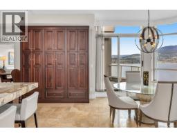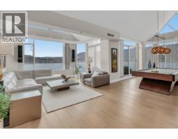$2,015.74 MonthlyWhere Luxury Meets the Lake: Welcome to one of Kelowna’s most iconic Lakefront Penthouse Residence’s. Spanning 3,000 sq. ft.,this meticulously renovated residence soars above the city, showcasing sweeping panoramic views of Okanagan Lake, the bridge, downtown skyline, and the beach below. Elegantly updated throughout, highlights include hand-crafted medieval walnut doors, refreshed Hunter Douglas window coverings, and a chef-inspired gourmet kitchen with premium granite countertops and state-of-the-art appliances. The vaulted living room, featuring a contemporary gas fireplace, opens onto one of three private decks, ideal for enjoying morning coffee at sunrise or a glass of Okanagan wine at sunset, selected from your temperature controlled wine library. The expansive primary suite, crowned with its own vaulted ceiling, flows seamlessly from a walk-through closet with custom built-ins to a spa-inspired ensuite complete with granite countertops, a grand floor-to-ceiling granite walk-in shower, and heated floors. Additional features include two secure underground parking stalls, storage, and access to premium amenities such as two pools, a steam room, and a fitness centre. There's even opportunity for boat moorage in the Lagoon. Perfectly positioned in the heart of downtown Kelowna, this residence offers unparalleled walkability to world-class dining, shopping, galleries, theatres, the arena and the beach. (id:26472)