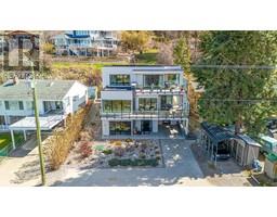 Steps from Lake Okanagan, this custom-built masterpiece blends luxury and lifestyle in one of the most sought-after waterfront-adjacent locations. Immaculate and filled with light, the home showcases an open suspended staircase with a mirrored backdrop and a private elevator that makes every level easily accessible. The kitchen is a chef’s dream with exquisite granite counters, high-end appliances, and a walk-in pantry that keeps everything tucked neatly out of sight. Enjoy panoramic lake views from nearly every room, with decks and patios on each level inviting you to unwind, entertain, or simply soak up the stunning scenery. The primary suite is a true retreat featuring a massive walk-in closet with secondary laundry and a spa-like ensuite. With four bedrooms and three full baths, there’s space and style for everyone. The lower level is an entertainer’s haven with a sleek bar, a spacious family room, and walk-out access to an outdoor shower; perfect after enjoying the swimming, paddle boarding or boating at the beach just steps away. A private buoy awaits to tie up your boat, and you're mere steps from the serene lakeside linear park that winds along Okanagan Centre’s beautiful shoreline. Whether you're hosting guests or relaxing in peace, this home offers a rare blend of thoughtful design and unmatched Okanagan beauty. Walk to the coffee shop, museum and play ground, The boat launch is just minutes away - and shopping is a short drive for all your needs. Okanagan Life! (id:26472)