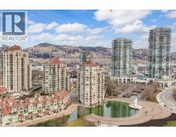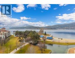 Iconic waterfront living in the heart of Kelowna’s Cultural District! Perfectly positioned on the waterfront, this beautiful two bedroom two bathroom lakeview condo offers a front-row seat to the very best of downtown Kelowna living. Inside, expansive walls of windows flood the home with natural light and frame views of Okanagan Lake, the bridge, the boardwalk, and the iconic Dolphins fountain below. The thoughtfully designed floor plan blends comfort and function, with a generous living area, ideal for both everyday living and entertaining. The kitchen features bar-style seating, under-cabinet lighting, ample cabinetry, and abundant counter space, seamlessly opening to the dining area where lake and city views elevate every meal. Step outside to not one, but two private patios, perfect for morning coffee, sunset dinners, or a glass of Okanagan wine as the city lights come alive. The primary bedroom is a true retreat, complete with a walk-in closet and a private ensuite, while the second bedroom and full bathroom provide flexibility for guests, a home office, or family. The Dolphins offers resort-style amenities including an outdoor pool, hot tub, tennis court, fitness centre, and immaculately maintained grounds. Right outside your doorstep you’ll find Kelowna’s Cultural District, with world-class dining, galleries, theatres, boutique shopping, and microbreweries just steps away. Walk to the beach, marina, yacht club, boardwalk, festivals, and waterfront parks, or simply enjoy the energy of downtown from your own balcony. Whether you’re seeking a full-time residence, a high-end urban retreat, or a premier waterfront investment, this is lakefront living at its most iconic, where culture, convenience, and the Okanagan lifestyle meet. (id:26472)