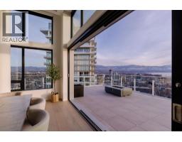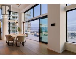 This penthouse at ONE Water Street, elegantly defines Okanagan urban living. Compromising one-half of the 29th floor and purposefully designed to make the most of Kelowna's vistas and natural light, enjoy captivating panoramic views through large spanning bay windows, offering unparalleled sights of the city, lake, and mountain scape. Expansive 3-bedroom home offering over 2400 sq. ft. of open concept living ideal for everyday living and entertaining. Well-appointed with carefully selected custom finishings, a superior appliance package and soaring ceilings. Designed with outdoor living in mind, enjoy enthralling views from the immense outdoor space totalling over 1,200 sq. ft. and featuring a fire pit, hot tub and outdoor kitchen. Retreat to the sensational primary suite with a spa-inspired en suite. SMART Home package for your convenience with automatic blinds, audio, climate control, security and lighting. Secure parking for 3 cars. Residents of ONE Water will relish in access to The Bench. The landscaped 1.3-acre amenity oasis is comprised of two impressive swimming pools, oversized hot tub, a pickleball court, outdoor seating with fire pit enclaves, a dog park, and so much more. Just steps from your front door, you will find a selection of restaurants, cafes, retail stores, and services lining the ONE Water Street streetscape. Georgie Award Finalist for BC Residential Community of the Year. (id:26472)