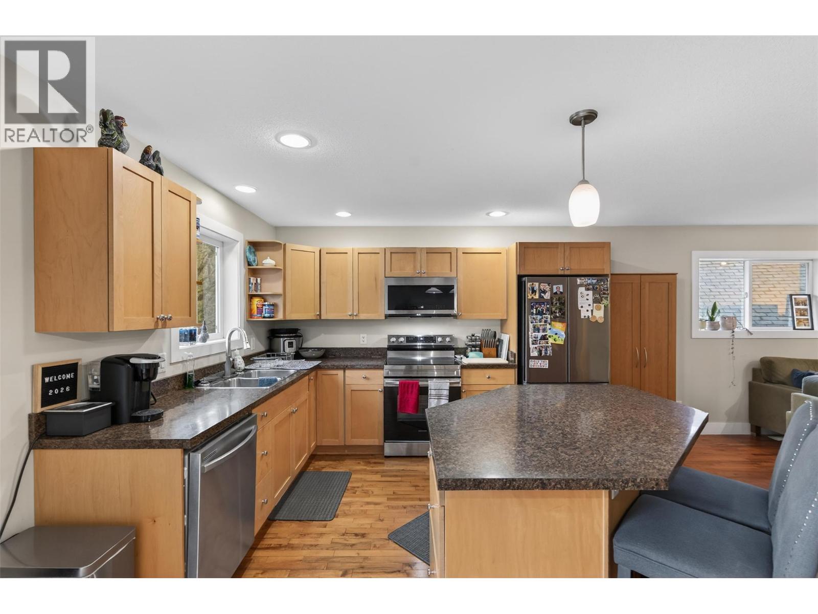 Nestled in a peaceful Castlegar neighborhood, this impeccably maintained 2,132-sq-ft home offers a perfect blend of modern comfort and investment potential. The main level features a bright, open-concept layout where the kitchen, dining, and living areas flow seamlessly together—ideal for hosting family and friends. Step from the living space onto a large deck to enjoy the quiet surroundings. This floor includes two comfortable bedrooms and a full bath, while the lower level expands your living options. With a third bedroom, second bath, large family room and roughed in plumbing for a kitchen, the walk-out basement is ready for a simple suite conversion to serve as a mortgage helper or family. Storage is a major highlight, featuring an attached garage with extra-high ceilings for gear or tools. Situated on a manageable .11-acre lot, the property offers ample space for gardens and a green thumb's touch. Practicality is ensured with abundance of additional off-street parking for guests. Built in 2007, this home combines modern construction with a functional floor plan suited for families or investors alike. Whether you are looking for a turnkey residence or a savvy rental, this property delivers versatility in a serene residential setting. Enjoy proximity to local amenities while retreating to your own quiet corner of the Kootenays. This is a rare opportunity for a move-in-ready home with significant upside potential. (id:26472)