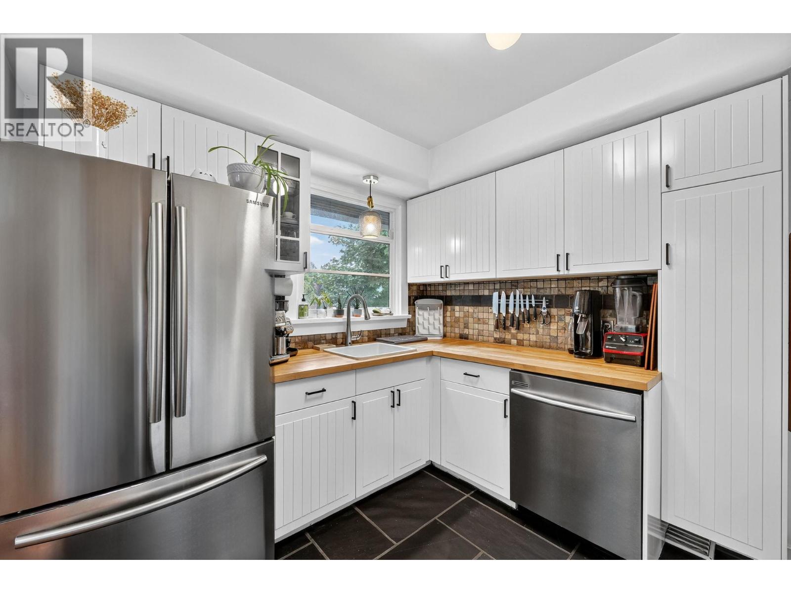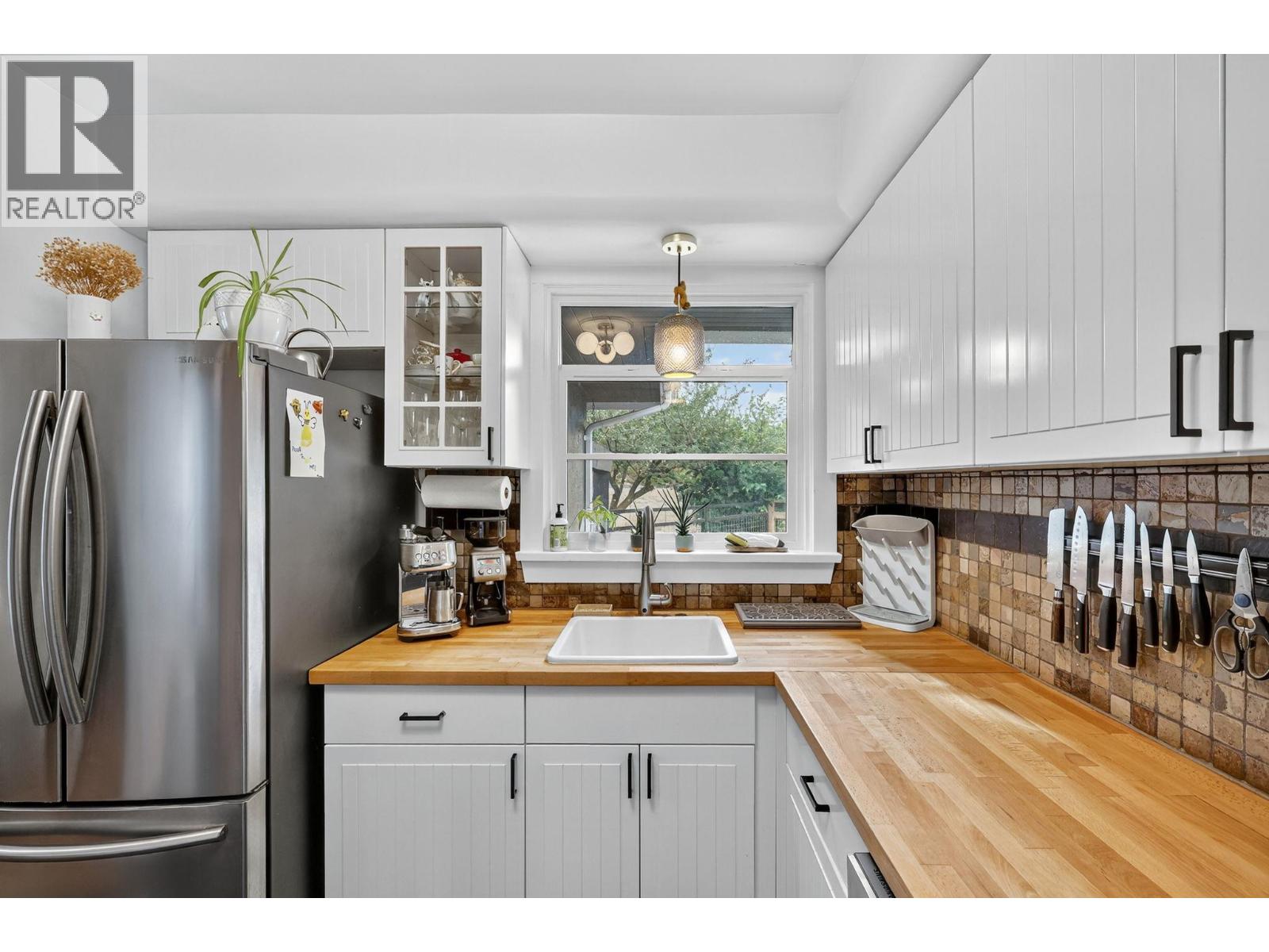 Beautifully maintained and updated 1950s home in one of Kelowna's most sought-after neighborhoods. This move-in ready 3-bedroom, 2-bathroom residence offers the ideal blend of classic character and thoughtful updates. The main floor features professionally refinished hardwood floors, a bright living room with stepped tray-style ceilings and extra-large windows, and a stunning kitchen with slate flooring, butcher block countertops, and country-style cabinets. Two bedrooms and a full bathroom complete the main level. The basement adds versatile living space with a family room, third bedroom, full bathroom with custom glass shower, and large laundry room. A separate entrance provides excellent flexibility for extended family or potential rental income. Extensive upgrades include a high-efficiency gas furnace, updated PEX plumbing, and new windows and exterior doors throughout, ensuring modern efficiency and peace of mind. Outside, enjoy a spacious deck, generous yard, storage shed, and 12x10 workshop. The recently paved driveway offers abundant parking with a gated area for your RV or boat. Perfectly located on a quiet, family-friendly street, you're minutes from schools, parks, golf courses, and shopping. This solid home represents excellent value in Old Glenmore. Call, Text or Email today with any questions or to arrange a private viewing of this charming property! (id:26472)
