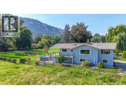 Discover this 2.5-acre farmstead in the heart of Dale Meadows, surrounded by picturesque meadows, rolling orchards, and breathtaking views of the valley and Giants Head Mountain. The home has been tastefully updated inside and out with new exterior siding, windows and doors, plumbing fixtures, flooring, trim and moldings. Approximately 3000 sq. ft. of living space offering 4 bedrooms and 2.5 bathrooms, vaulted ceilings, 2 fireplaces, a spacious rec room, versatile flex space, and a large mudroom conveniently connected to a covered sun room. Enjoy outdoor living with a covered patio overlooking the grassy property with above ground pool and flourishing sunflower patch in the distance. With excellent sun exposure throughout the day, this property is ideal for both farming and family living. Additional highlights include ample parking, a carport, a workshop, three stall barn, and a peaceful creek. (id:26472)