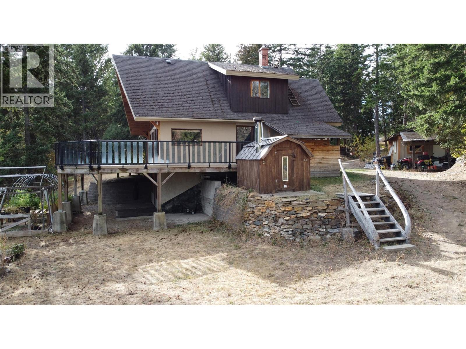 Enjoy breathtaking views of the lake and mountains from this picturesque property situated on a serene no-thru road. With a mostly flat one-acre lot, there is ample space for a future garage or workshop. The main floor features an open kitchen and dining area, a cozy living room, with access to a spacious deck perfect for outdoor entertaining, a full bathroom and laundry room. The upper level boasts two bedrooms and a large bathroom with a soaker tub. Downstairs offers two more bedrooms, another full bathroom, some additional storage space, and convenient outdoor access. This property also includes a shed, sauna, chicken coops, gardening area, and fire pit for endless outdoor enjoyment. With public lake access nearby and convenient proximity to Kamloops and Salmon Arm, this property offers the perfect blend of tranquility and convenience. (id:26472)