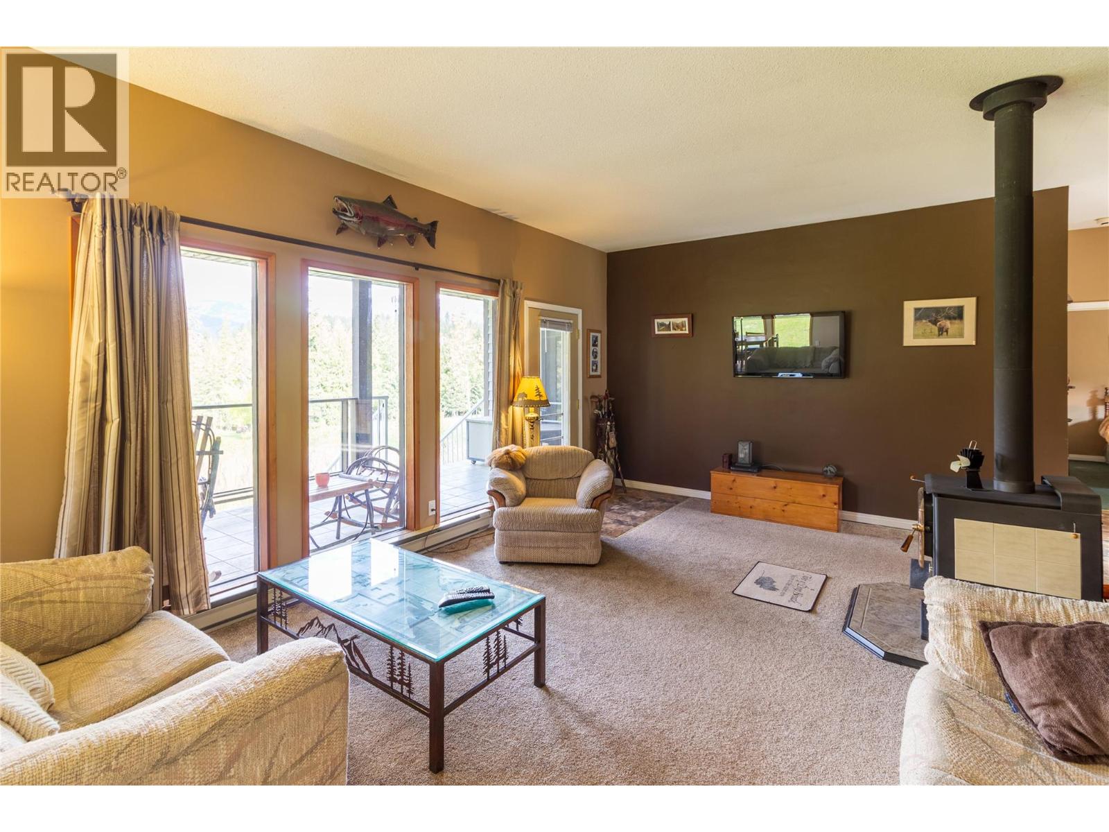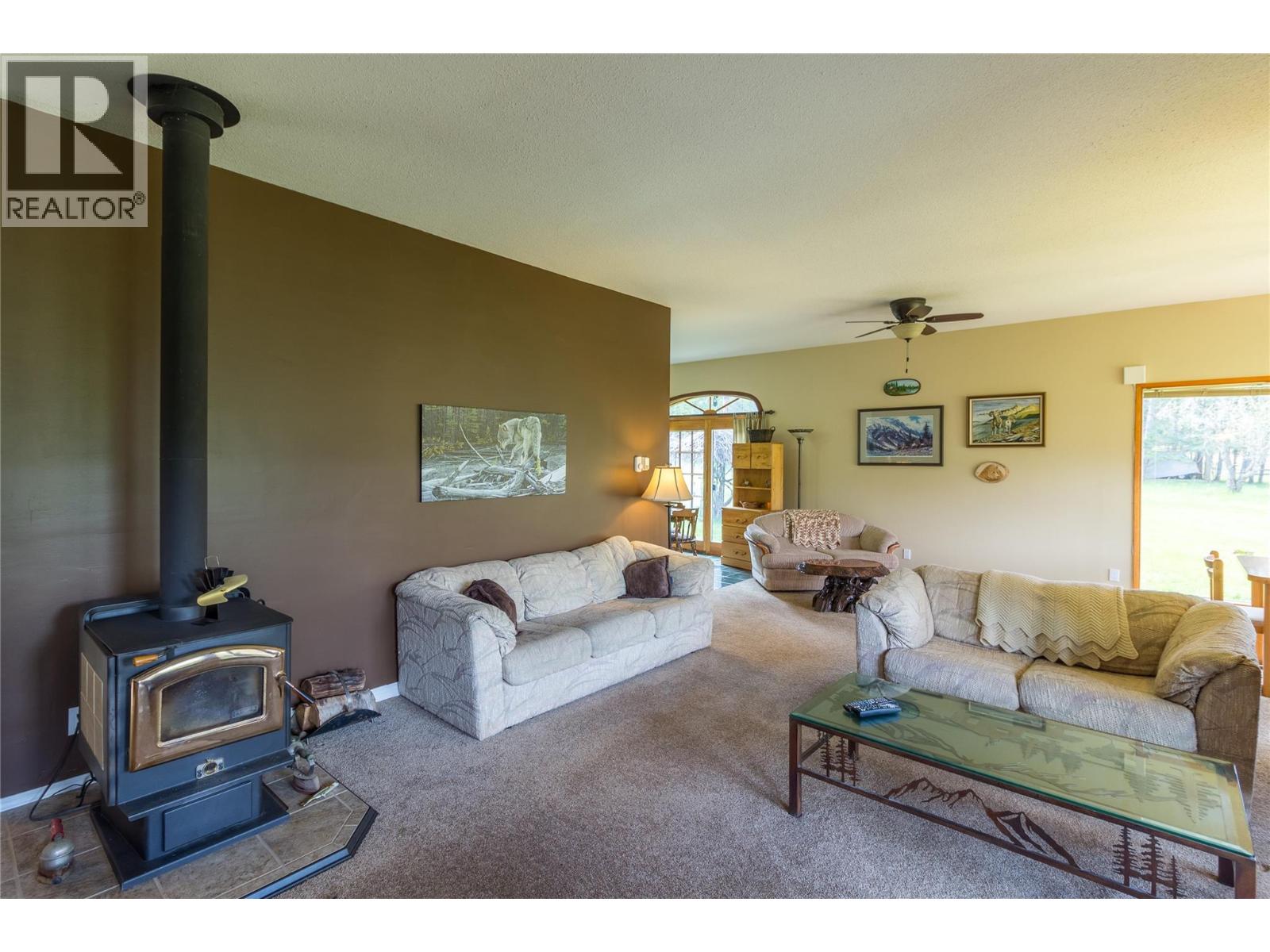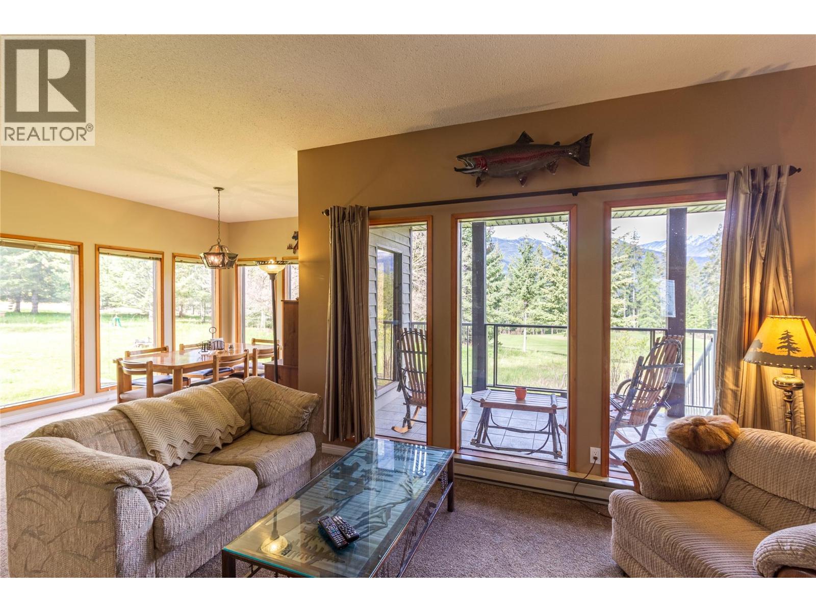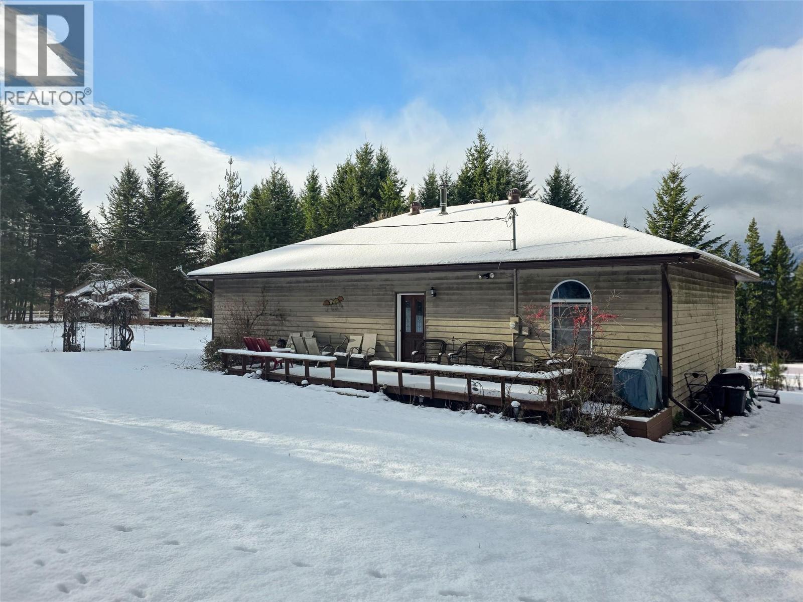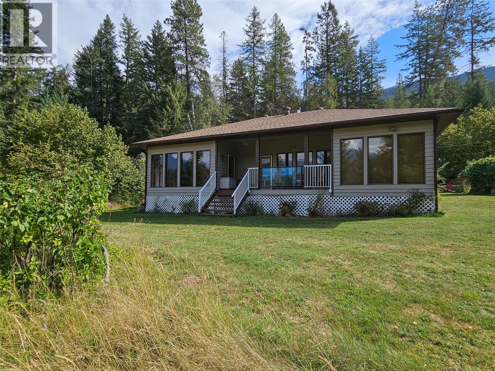Situated just over an acre of land on the edge of town and along the fairways of the Riondel golf course this home and property are a unique offering in the Riondel market. The house consists of 2 bedrooms, and 2 full bathrooms spread out over 1500 sq/ft of single-level living with a large, functional, living space ideal for gatherings with family and friends. The views of the fairways and mountains are near perfect from everywhere in the house thanks to the huge number of floor-to-ceiling windows facing West and the back covered deck is the ideal spot to further take in those views. Recent improvements include a new front deck, a freshly painted exterior and a newer roof. The property is just over an acre and nicely treed from the road to provide privacy and there's ample yard space at the house to accommodate additional guest RV's or build a garage/shop ect. This home and property will not disappoint, so be sure to schedule your viewing today. (id:26472)