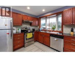 Step inside this beautifully renovated home on 0.5 acres of cleared land. Situated on a hill, the wide switchback driveway offers tons of room for parking and the option to build your dream shop or garage. Through the front door you’ll find plenty of space to unload, along with an adjacent utility room with two furnaces—one for upstairs and one for downstairs. Head up to the main living area where you’re greeted by a large open-concept dining and living space, a spacious kitchen with breakfast nook, matching portable island, and pantry. The primary bedroom features two closets and an ensuite with shower. A second bedroom and another updated bathroom complete the main level. From both the kitchen and living room you can access the back deck, while the living room also opens to the front deck—check out the photos to see how much outdoor space there really is. The lower level can be an extension of the upstairs or used as a separate suite. It includes three bedrooms, a living/flex area, laundry, plus a full kitchen and bath. The suite has its own heating controls, but if you choose to rent it out, you retain access to the furnace for maintenance, since access is through the door to upstairs. Outside you’ll find raised garden beds, a fire pit, and a garden shed, plus beautiful sunsets over the lake from the front deck. Just an 8-minute walk to Hillcrest Elementary, this home offers space, flexibility, and a great location. (id:26472)