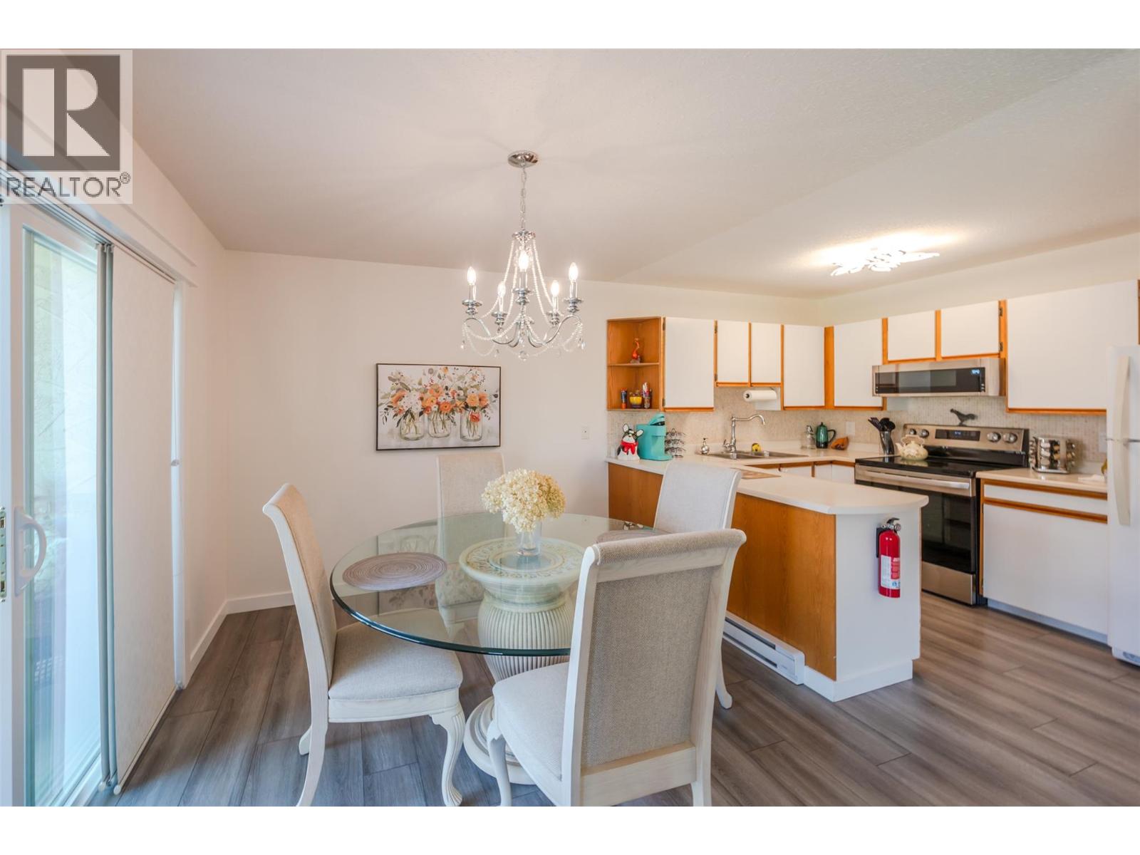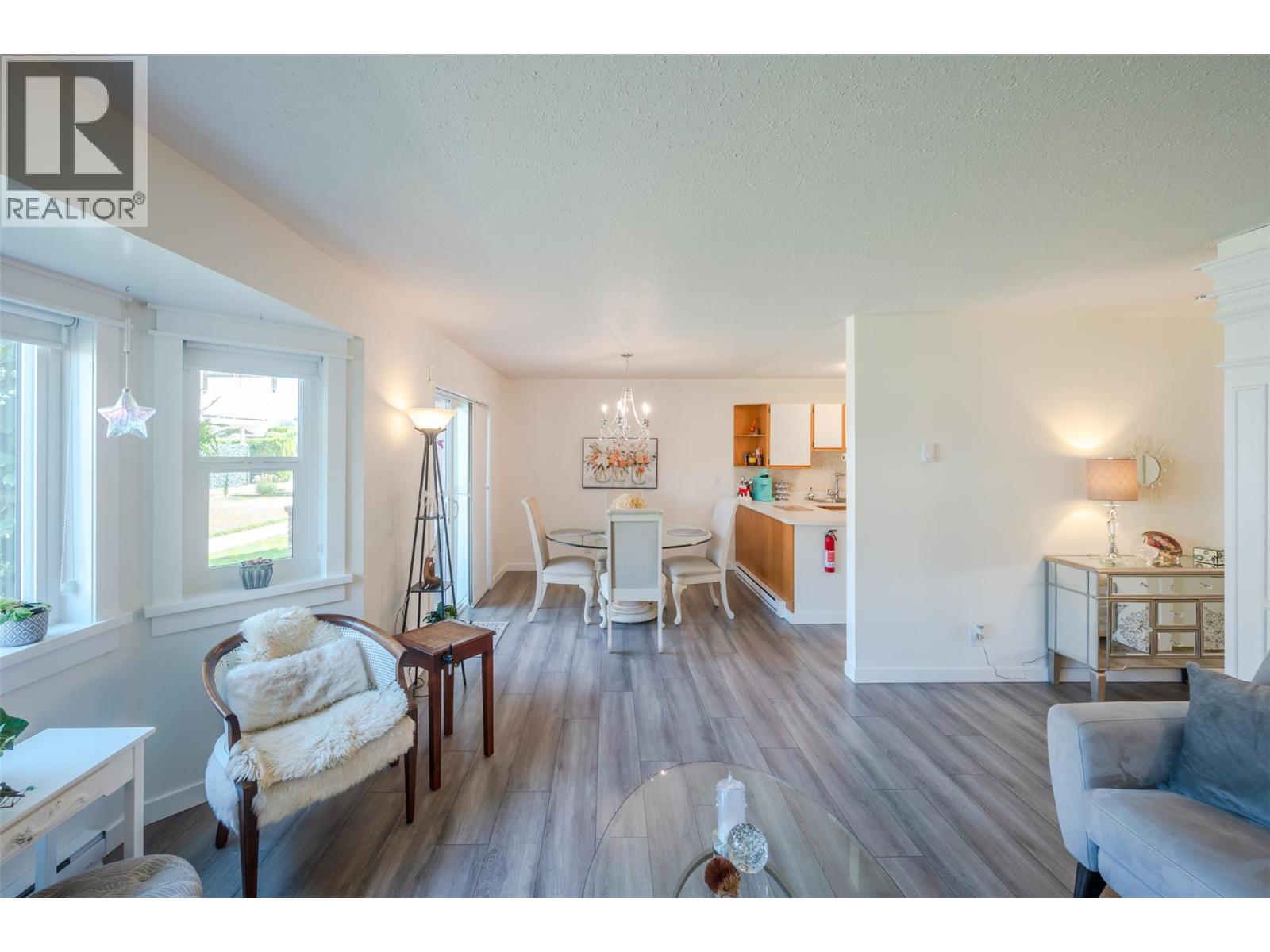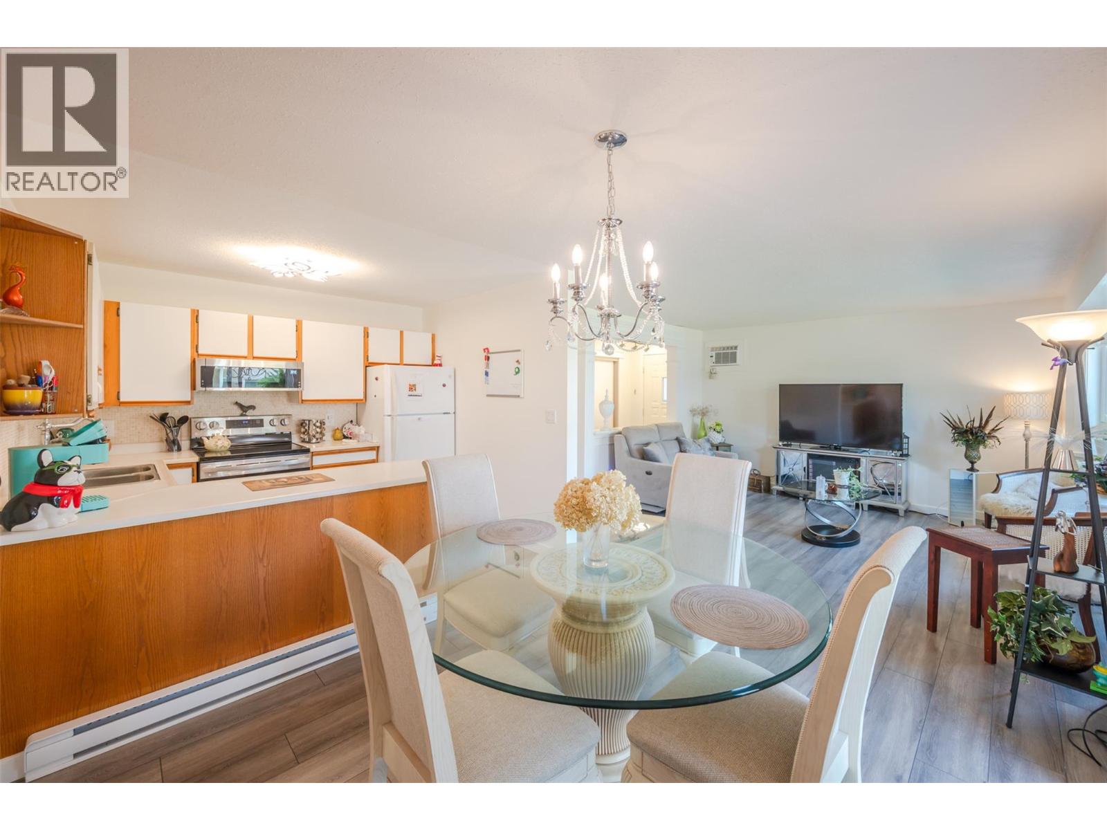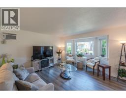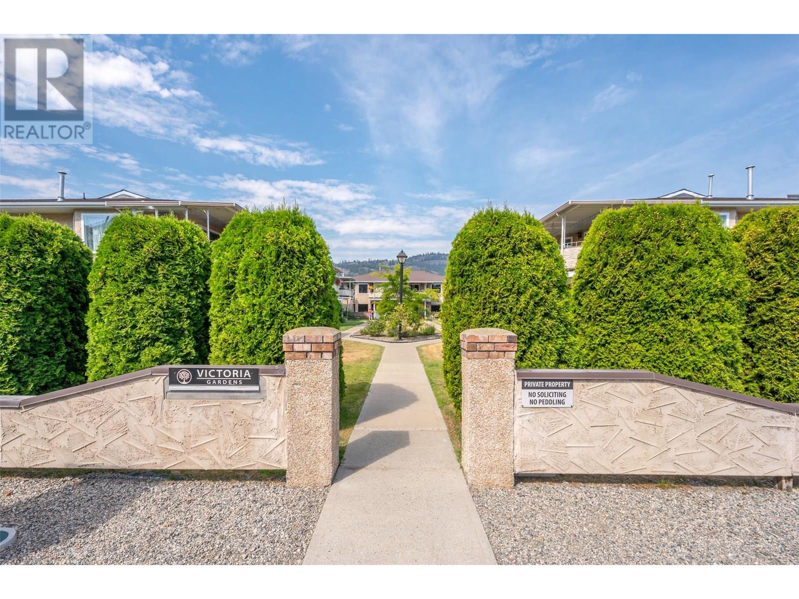 $275 MonthlyLovely bright ground level unit in Victoria Gardens with tons of charm and elegance. Easy access to this 2 bedroom, 1 bath home with cozy patio and gorgeous gardens surrounding the home. Newer flooring, windows, lighting in kitchen and dining room, along with a refreshing paint scheme showcase this townhome. Open concept from kitchen to dining room makes entertaining easy. Bedroom closets are generous with tons of room for all your clothing and shoes. Also has a large storage unit adjacent to the front door. One of the special features of this unit is the North facing covered patio where you can relax in the shade with a good book and an apertif while enjoying the mountain views and the lovely Okanagan Summer. Also a plus is the proximity to grocery, restaurants, drug stores and the rest of the downtown core....Restrictions are 55+ and one small pet (dog or cat) on approval with strata fees at $275. per month. Also has one covered parking space close to the unit . Come and see for yourself how good the Okanagan lifestyle can be. (id:26472)