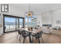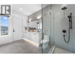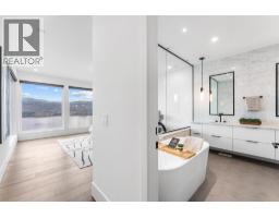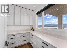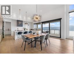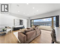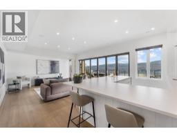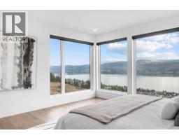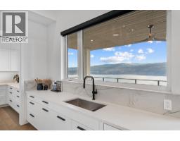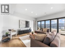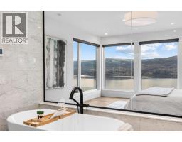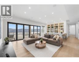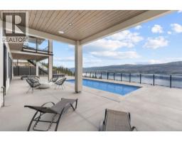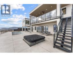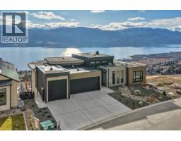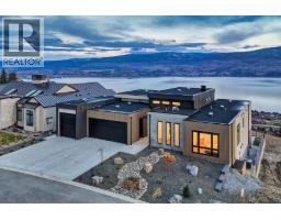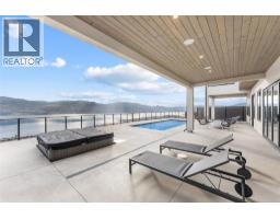 Perched in Vineyard Estates with sweeping views of Lake Okanagan and scenic Mission Hill Estate Winery, this modern home blends contemporary design with exceptional craftsmanship. Minutes to beaches, world-class wineries, parks, and the hiking and biking trails of Mount Boucherie, it offers an ideal Okanagan lifestyle. The main level features soaring ceilings, wide-plank hardwood, and floor-to-ceiling windows framing panoramic vistas. A floor-to-ceiling feature fireplace anchors the living area alongside custom built-ins and power blinds. The chef’s kitchen impresses with Caesarstone surfaces, a dramatic backsplash, Wolf + JennAir appliances, a large island, and a fully equipped butler’s pantry. Walkout access to a covered view deck with speakers, wood ceiling inlay, and BBQ hookup. The lakeview primary is a serene retreat with a walk-in closet and a stunning 5-piece ensuite with heated floors, floor-to-ceiling tile, and a dramatic glass wall. A second bedroom with ensuite and an office complete the main level. The lower level is designed for connection with two additional bedrooms (1 has ensuite), a luxe 4-piece bath and a spacious recr room with custom wet bar, wine display, and nano doors opening to a pool deck. Outside, enjoy a sunken hot tub, concrete 14x28 saltwater pool (power-cover ready), and unobstructed glass-railed views. With upgraded lighting, 8-ft doors, abundant storage, and a 3-car garage, this residence delivers refined Okanagan living. (id:26472)