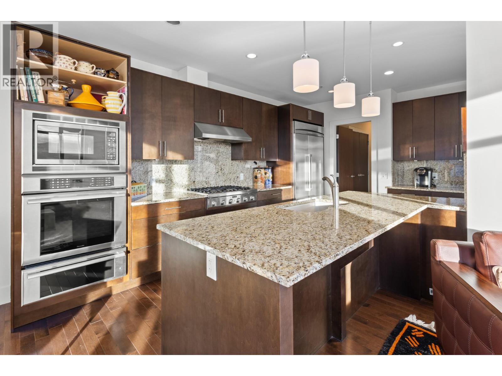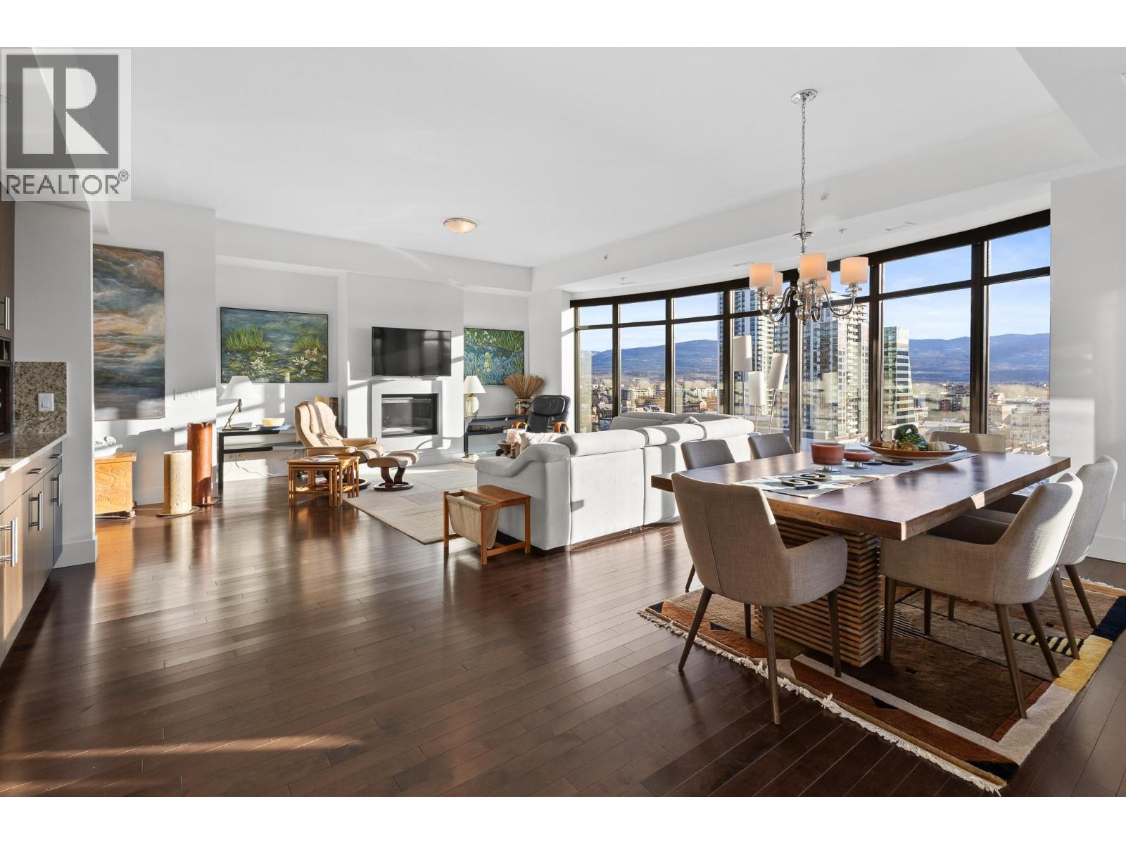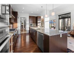 Welcome to the Sky Suite at The Madison, a rare luxury corner residence in one of Downtown Kelowna’s most exclusive boutique buildings. This expansive three bedroom, three bathroom condo offers over 2,400 square feet of refined living space, perfectly positioned to capture breathtaking lake and city views through dramatic floor-to-ceiling windows. Thoughtfully designed with elevated finishes throughout, the home showcases travertine, hardwood flooring, high-gloss granite, and custom cabinetry with generous closet and storage space. The gourmet oversized kitchen is a chef’s dream, featuring a granite island with eating bar, fully equipped stainless steel appliances, a six-burner gas stove, with an additional wet bar and wine fridge, ideal for both everyday living and entertaining. The luxurious primary suite is a private retreat, complete with a spa-inspired ensuite offering dual sinks, a glass-enclosed shower, and a soaker tub. Two additional bedrooms and bathrooms provide flexibility for guests, a home office, or family living. Step outside to enjoy two private balconies, perfect for soaking in the views and Okanagan sunshine. The Madison is a unique architecturally designed boutique building with only 57 residences across 15 storeys, offering privacy and exclusivity. Residents enjoy access to a fitness centre, and pets are welcome with restrictions. Located in the heart of the Downtown Kelowna Cultural District, this home boasts exceptional walkability. You’re steps from the waterfront, beaches, boardwalk, award-winning restaurants, cafes, galleries, shopping, and year-round cultural events. Whether it’s a morning stroll by the lake or an evening out downtown, everything Kelowna has to offer is right at your doorstep. (id:26472)