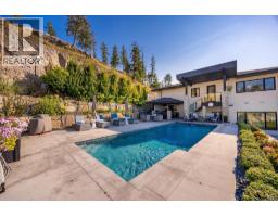 Located in one of Kelowna’s most desirable neighborhoods, this property captures 180-degree panoramic views of the lake and mountains. Set on a quiet cul-de-sac, it offers rare privacy while remaining just minutes from downtown, wineries, golf, restaurants, and all the best of Okanagan living. The open-concept main level seamlessly connects indoor and outdoor living. A chef’s kitchen, designed by Carolyn Walsh, features a Thermador six burner range, two panelled fridges and dishwashers, a panelled freezer along with a striking two-tone island. A new working pantry and custom wine room elevate the home’s entertaining potential. Two primary suites provide private retreats with spectacular lake views. The main-level suite includes a fireplace sitting area and spa-inspired ensuite with a curbless steam shower. The lower-level suite mirrors the same luxury finishes, offering flexibility for guests or family. Designed for entertaining, the lower level also boasts a twelve seat theatre, wet bar, and recreation space, with a separate entrance for guests. Lower level radiant in-floor heating keeps every space warm and inviting. Resort-style outdoor living awaits with a saltwater pool, pool bath, artificial turf yard, and an outdoor kitchen - ideal for summer gatherings. Combining luxury, functionality, and effortless living, this home also grants direct access to Knox Mountain Park and Kelowna’s outdoor lifestyle. With its privacy and breathtaking views, this property delivers the quintessential Okanagan experience. (id:26472)