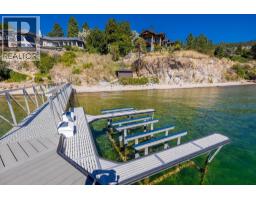 Over 7,000 square foot architectural masterpiece with a 2,200 square foot secondary home and shop, located on 2.35 acres with over 250 feet of prime lakeshore frontage in the prestigious Carr’s Landing area of Lake Country. Upon entering this gated estate, you drive on your heated driveway to the main residence, passing the secondary home, beach volleyball court, playhouse, vineyards, & mature landscaping. The home, built by renowned Team Construction, offers extensive beam work & all the upgrades one would expect. The four bedroom plus two den and office, seven bathroom layout also provides many deck spaces, all situated to maximize the stunning views provided on this bluff. In-floor heating, security system, sauna, smart-home technology, elevator, & a media room are just a few of the upgrades within this home. The outdoor entertainment space is second to none, with seamless indoor/outdoor flow that leads to an outdoor kitchen, koi pond, large pool with a water slide, kids pool, and hot tub area. The craftsmanship of the home must be seen in person to appreciate, with quality of materials throughout. The second home offers; wine making area below with storage, main floor with a large workshop (two car lifts), & a functional two bedroom layout with a massive deck. The foreshore area has a structure for storage & a licensed dock with lifts. Located under the prestigious O’Rourke Family Estate. This level of waterfront estates does come along often, especially in one of the most desirable areas in the Valley. (id:26472)