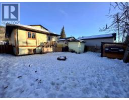Discover this spacious and uniquely styled 3-bedroom, 2-bath family home, featuring a large carport, front deck, fenced yard, and backing onto a natural treed green space, providing added privacy. The main level offers easy-care laminate and vinyl flooring, generously sized rooms, and a large dining area with a patio door leading to the front deck; perfect for enjoying mountain views and summer BBQs. The updated kitchen is complete with new white cabinets and newer stainless steel appliances. The unfinished basement includes a pellet stove, a dedicated workshop area, and a separate entry from the driveway that offers excellent potential for additional living space or storage. An ideal property for weekend getaways or full-time living while enjoying all the natural beauty Tumbler Ridge, BC has to offer. Contact your sales representative today to arrange a viewing. (id:26472)