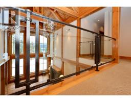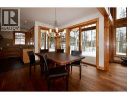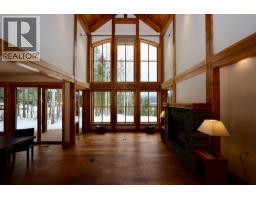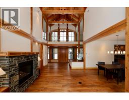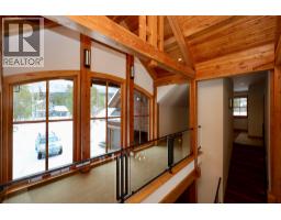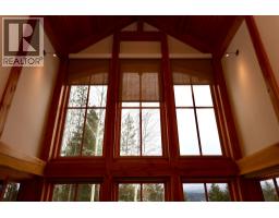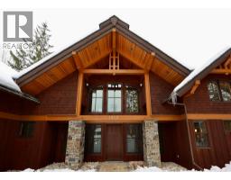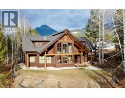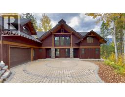 One of a kind luxury timber-frame home in a prestigious neighbourhood. Located minutes from the Golden Skybridge and perched on the edge of North Bench, this exceptional property offers breathtaking mountain views including a portrait view of Kicking Horse Mountain Resort. This home showcases dramatic vaulted ceilings, striking architectural lines, and exceptional craftsmanship throughout. Custom blacksmith metal railings with glass panels complement the timber-frame design, while solid natural stone accents frame the regal front door and continue inside around the cozy propane fireplace with a solid wood hearth. Walnut flooring offers timeless durability, ideal for mountain living. An abundance of large windows fills the home with natural light and multiple patio doors open to a large deck and hot tub pad for seamless indoor-outdoor living. Recently updated landscaping, mature trees, and a long private driveway create a private, estate-like setting. The main level features convenient single-level living with garage access, kitchen, laundry, living, dining areas, and the primary bedroom. Upstairs are additional bedrooms and bathrooms connected by a bridge overlooking the great room. A self-contained suite offers excellent rental income potential and mirrors the home’s high-end finishes. Additional features include geothermal heating, heated bathroom floors, security system, and a pre-plumbed garage. Furniture, beds, and linens are included. A truly exceptional home. (id:26472)