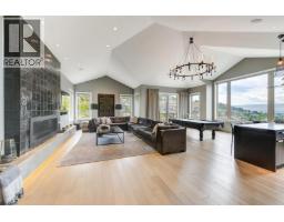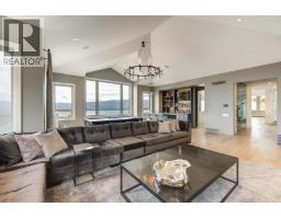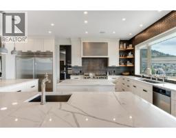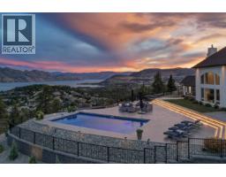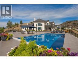 Truly beyond compare! Gorgeous custom home in the desirable private gated neighborhood of Vineyard Estates. From this residence you will enjoy remarkable panoramic views of Okanagan Lake, rolling hills, mountains, & vineyards, including the bell tower at Mission Hill. The outdoor living area is breathtaking with sweeping views, a pool, spacious areas for lounging & an outdoor kitchen is the ideal set up for dining, lounging, and playing outside all summer long. Inside no detail has been spared. The entire home features exceptional customizations creating the perfect backdrop for living & entertaining. Main level is designed to ensure all living spaces take full advantage of the view. From the great room enjoy soaring ceilings, & expansive windows. Flow seamlessly from the dining area to the gourmet kitchen. Prep, & host from the kitchen enjoying access to the outdoor oasis. Kitchen has been customized with a unique L-shaped entertainment-sized island and professional appliances. Unwind in the family room with a luxurious wet bar, tiled fireplace, and room for pool table. Bedroom on the main floor could be used as a home office. The primary retreat is located on the main level & features an opulent en suite & walk–in closet. The upper level offers two additional bedrooms with en suites, a loft flex space & a huge balcony overlooking the lake. Room for all your toys in the 5-car garage. Excellent location minutes to world-class wineries, trail networks & Okanagan Lake. (id:26472)