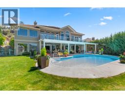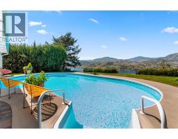 CLICK TO VIEW VIDEO! You have to come see this Heritage Hills executive home with stunning lake views & your own saltwater pool - an absolute outdoor entertainer's dream! With stunning curb appeal & over 4,000 sq.ft. interior living footprint, you are drawn into the big, bright open space of the living area, that extends to a large upper deck to enjoy the breathtaking views of Skaha Lake. All living is on the main floor with 2 bedrooms and a primary bedroom that is spacious & complemented by a 5pc ensuite that feels more like a spa. There are two additional magic spots: first, it's a large covered outdoor living area that flows seamlessly from a massive family room downstairs to the swimming pool area and deck. The entire wall of glass windows on the lower level and the staircase leading to it will remind you of a Palm Springs architectural design. It's easy to feel like a rockstar when you're entertaining in that space. The second: a 832 sq.ft. garage with custom cabinets that is perfect for a car collector or a wicked man-cave. Plenty of parking. New HWT. Light cement shingles that will last a lifetime. This is a premier neighbourhood where homes don't often come up for sale. Call us to book a showing. (id:26472)