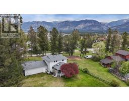 One of the most unique and desirable pieces of land you will find! 1.8 acres with a beautifully maintained family home, right in the heart of Invermere! An idyllic location on a quiet street siding onto the Toby Creek embankment and natural area, you can walk to schools and all the amenities of downtown Invermere in just minutes yet have the peace, quiet, and open space of living in the country. The 1.8 acre lot has a 3100 sqft home with attached oversized double garage and a triple detached garage, large and private rear deck, fenced in vegetable garden, fruit trees, and a large treed area that is perfect for hosting all your friends and family AND their trailers and campers for a weekend of fun (sellers have hosted 12+ trailers at once in their little ‘camp ground’). The home has a wide open main floor great room with amazing views and a huge kitchen, 5 good sized bedrooms including the primary with ensuite, 3 more full baths, and all the space you will need to host family and friends. The triple pane windows, furnace, heat pump and shingles are all NEWLY replaced. This property is just an amazing opportunity and really must be seen to be appreciated… (id:26472)