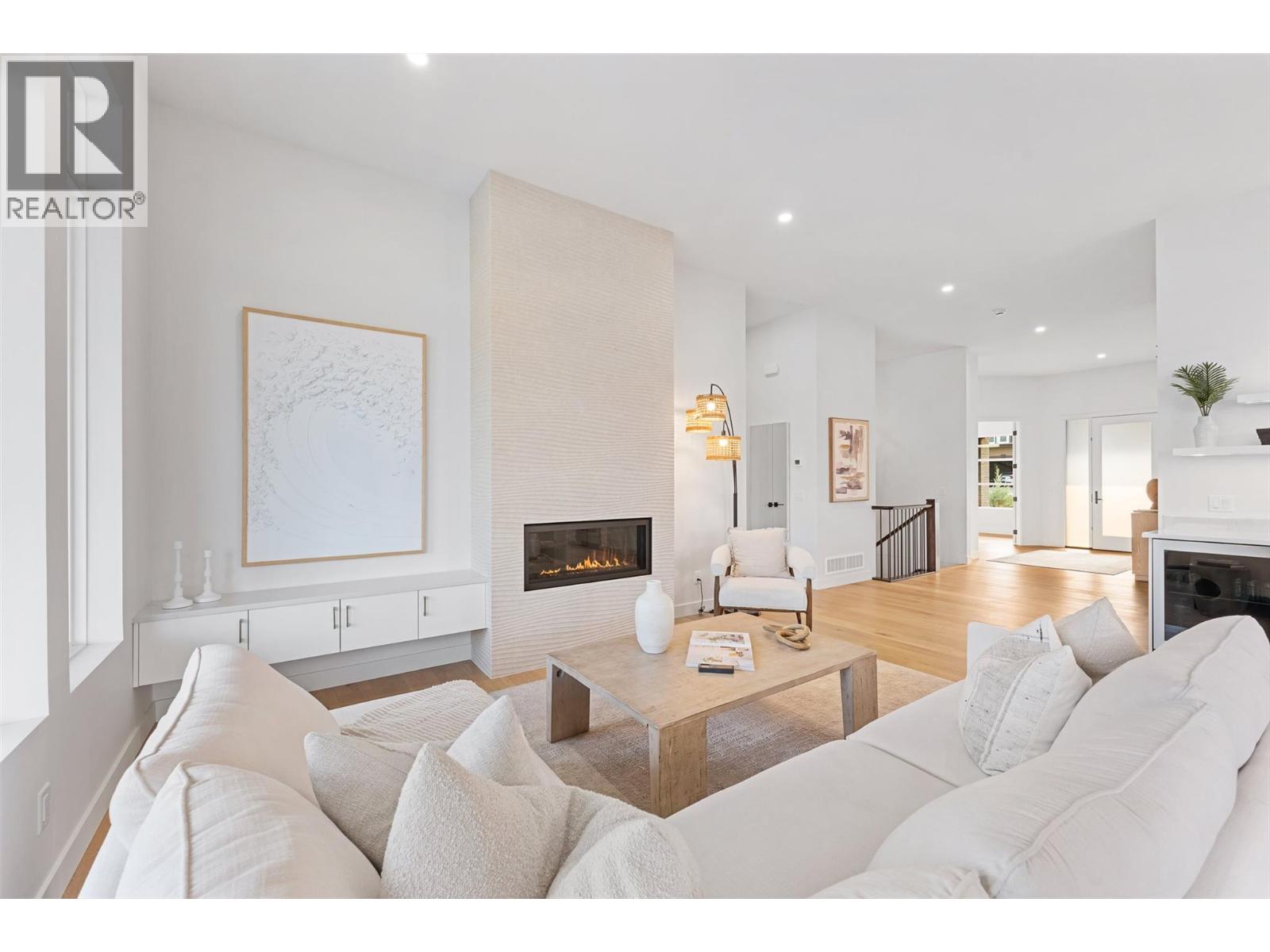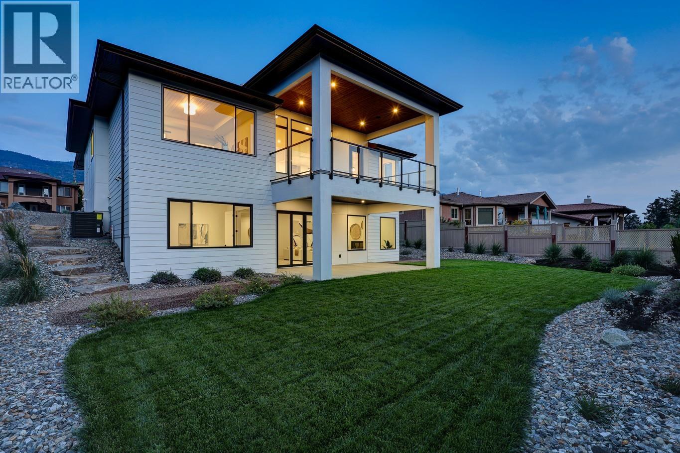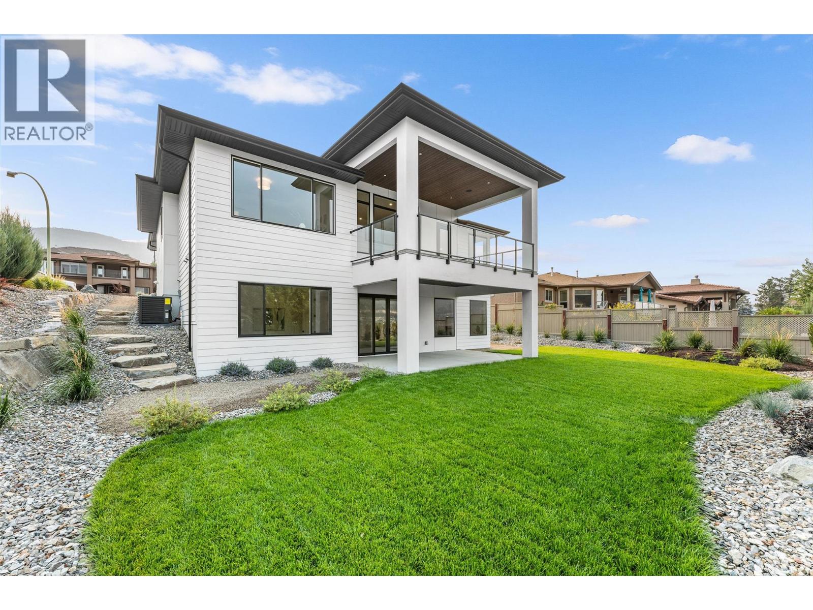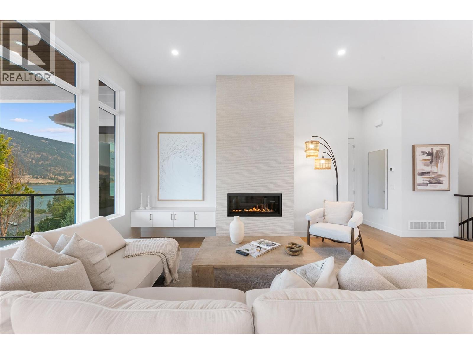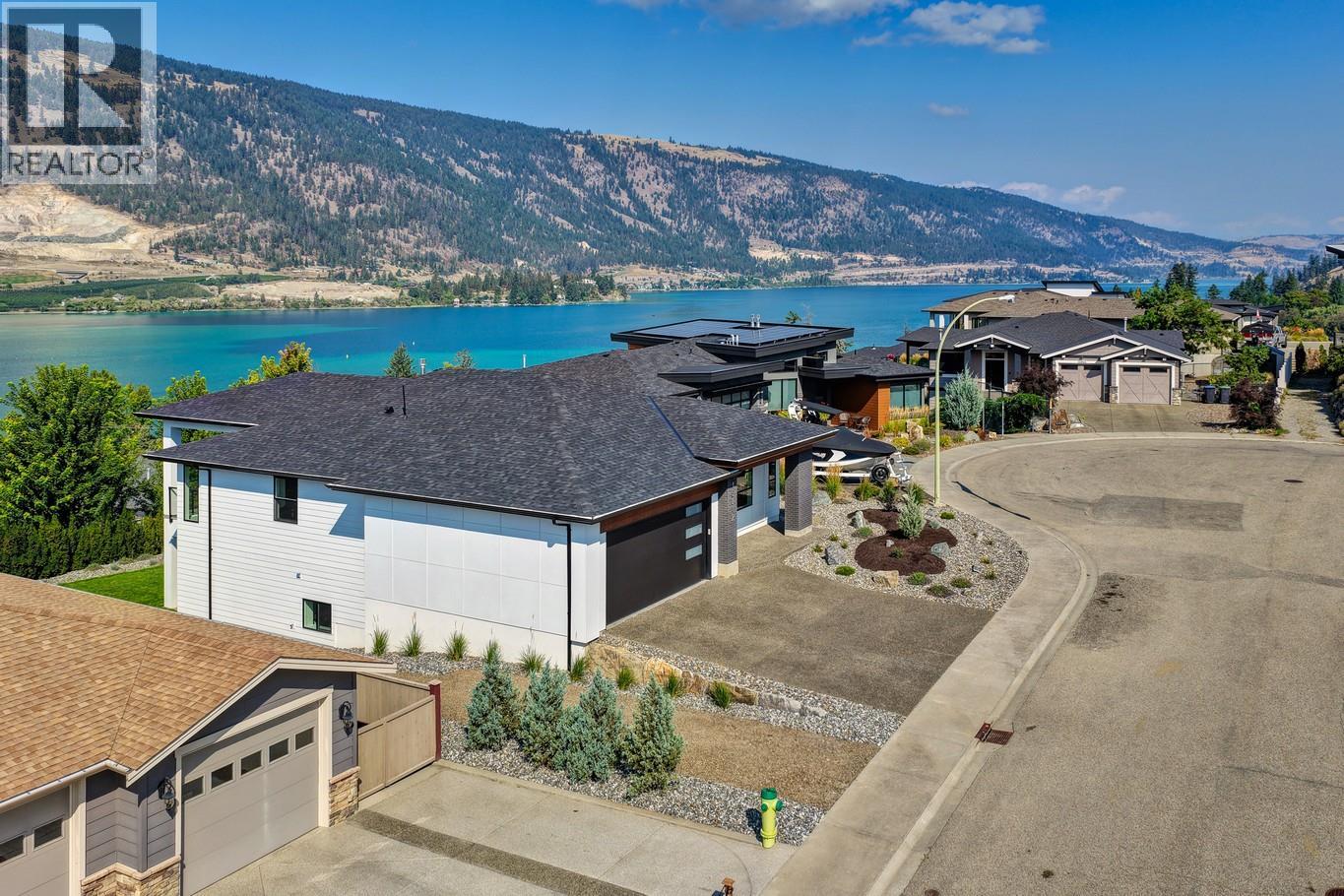 Priced to sell-Builder to pay applicable GST. New build with exceptional craftsmanship in Oyama. Located just steps from Kalamalka Lake, this brand-new 3 bedroom + den, 3 bath home blends modern design with quality construction in one of Lake Country’s most sought-after enclaves. Built by an elite local builder, every detail has been carefully curated—from wide-plank hardwood and heated tile floors to soaring ceilings and expansive windows that frame unobstructed lake and mountain views. The open-concept main level features a chef-inspired kitchen with Electrolux appliances, quartz surfaces, custom cabinetry, and a servery with wine fridge. A floor-to-ceiling fireplace anchors the living room, while the dining area flows seamlessly to a covered deck with built-in speakers and glass railing—perfect for entertaining or unwinding with panoramic views. The primary suite offers a private deck walkout, spa-like ensuite with freestanding tub and oversized shower plus a custom walk-in closet. The lower level continues the thoughtful design with a spacious recreation room, wet bar, theater, two guest bedrooms, and direct access to a covered patio and landscaped yard. Spacious yard with plenty of room to accommodate a pool. With an oversized double garage (24x24), RV/boat parking, and a cul-de-sac setting in a family-friendly neighborhood, this home combines craftsmanship, comfort, and the lifestyle of lakeside Okanagan living. (id:26472)
