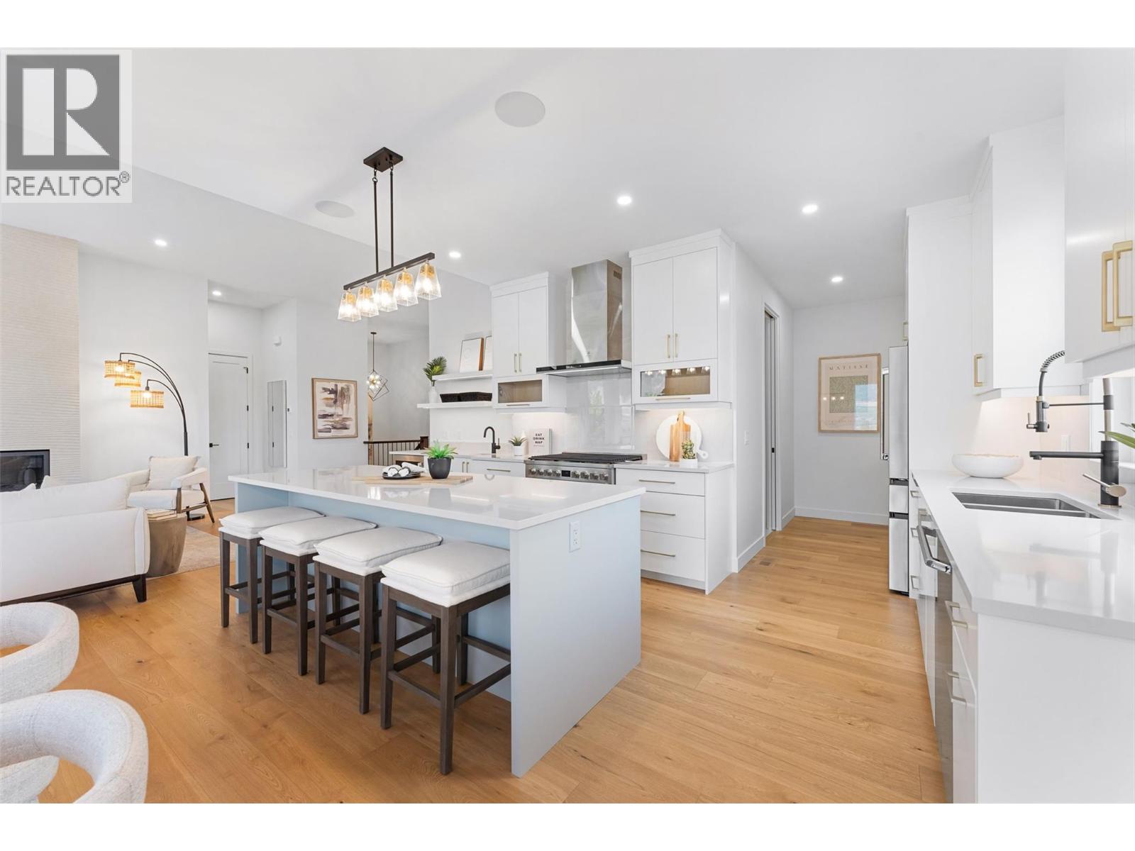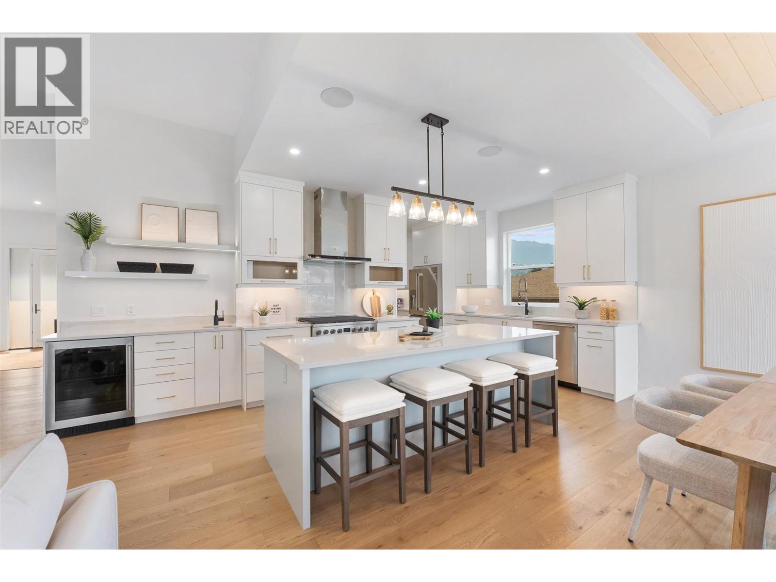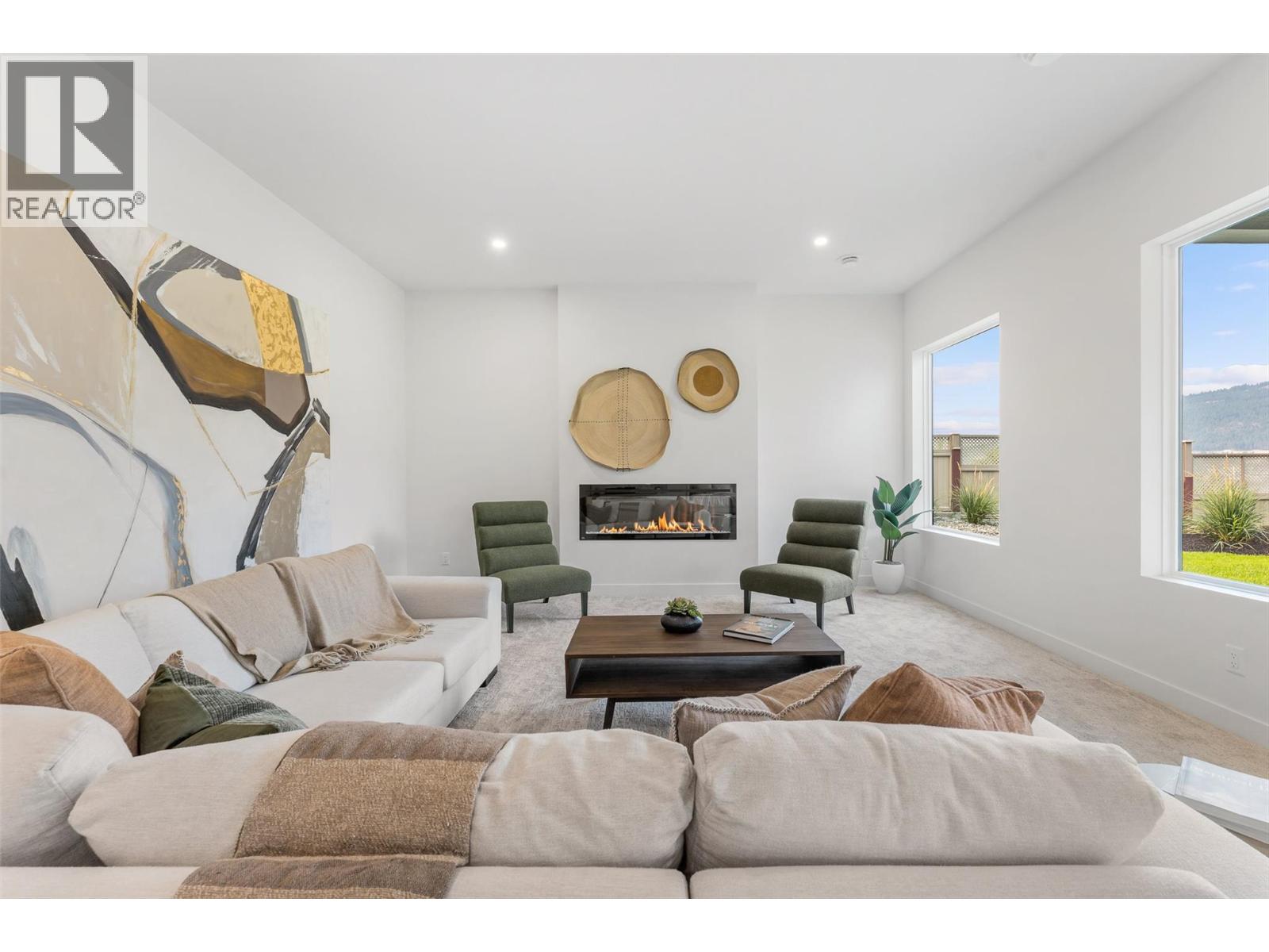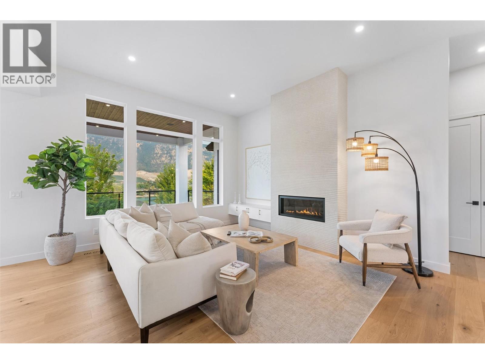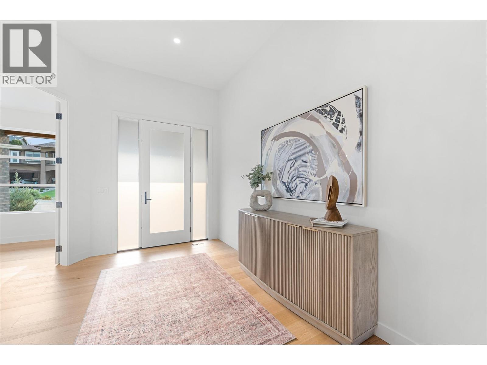 Priced to sell-Builder to pay applicable GST. New build with exceptional craftsmanship in Oyama. Located just steps from Kalamalka Lake, this brand-new 3 bedroom + den, 3 bath home blends modern design with quality construction in one of Lake Country’s most sought-after enclaves. Built by an elite local builder, every detail has been carefully curated—from wide-plank hardwood and heated tile floors to soaring ceilings and expansive windows that frame unobstructed lake and mountain views. The open-concept main level features a chef-inspired kitchen with Electrolux appliances, quartz surfaces, custom cabinetry, and a servery with wine fridge. A floor-to-ceiling fireplace anchors the living room, while the dining area flows seamlessly to a covered deck with built-in speakers and glass railing—perfect for entertaining or unwinding with panoramic views. The primary suite offers a private deck walkout, spa-like ensuite with freestanding tub and oversized shower plus a custom walk-in closet. The lower level continues the thoughtful design with a spacious recreation room, wet bar, theater, two guest bedrooms, and direct access to a covered patio and landscaped yard. Spacious yard with plenty of room to accommodate a pool. With an oversized double garage (24x24), RV/boat parking, and a cul-de-sac setting in a family-friendly neighborhood, this home combines craftsmanship, comfort, and the lifestyle of lakeside Okanagan living. (id:26472)
