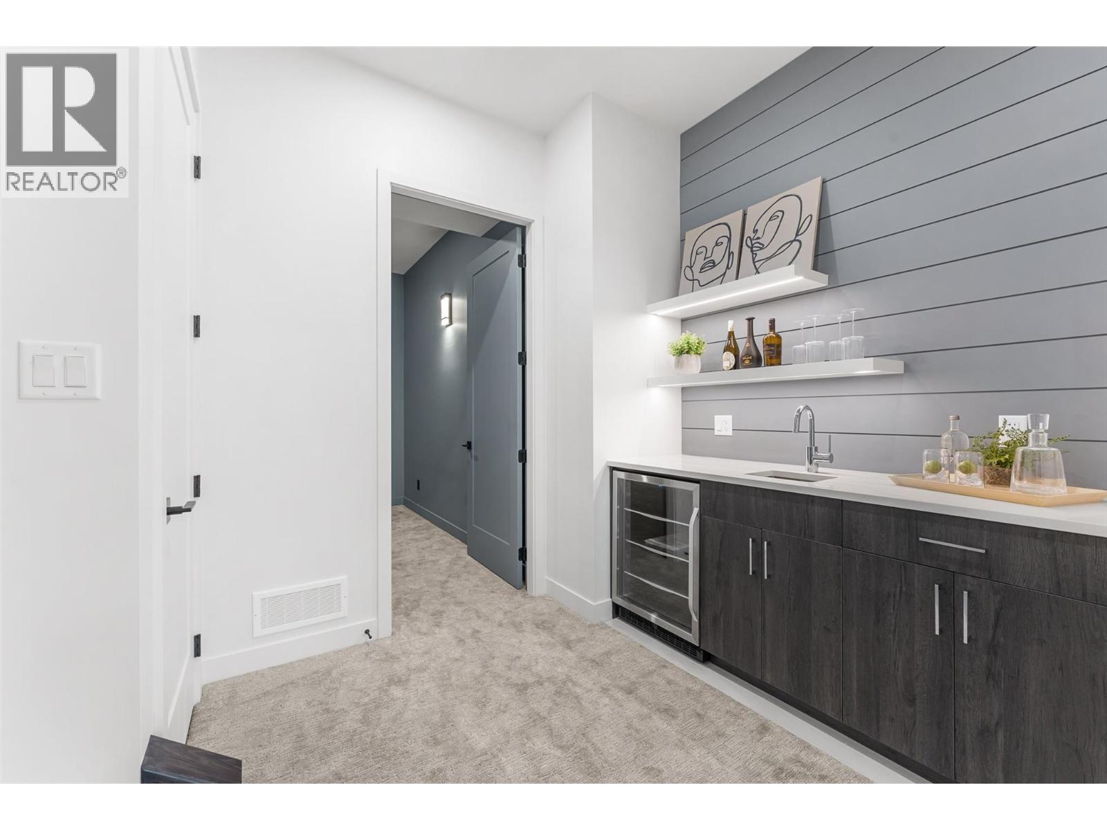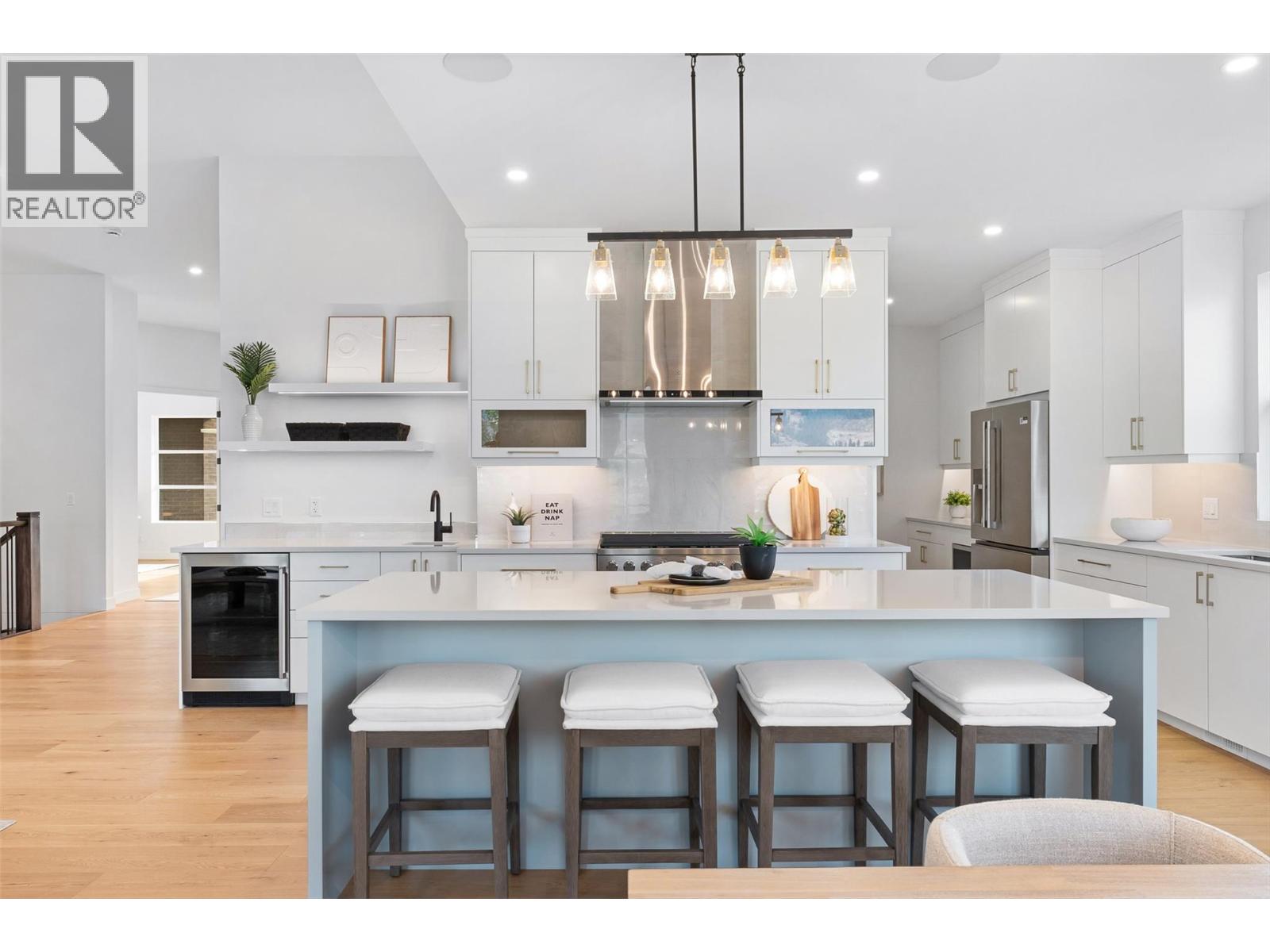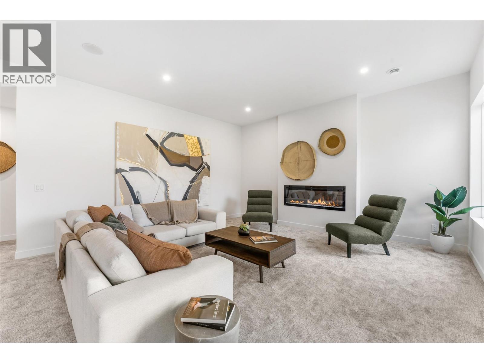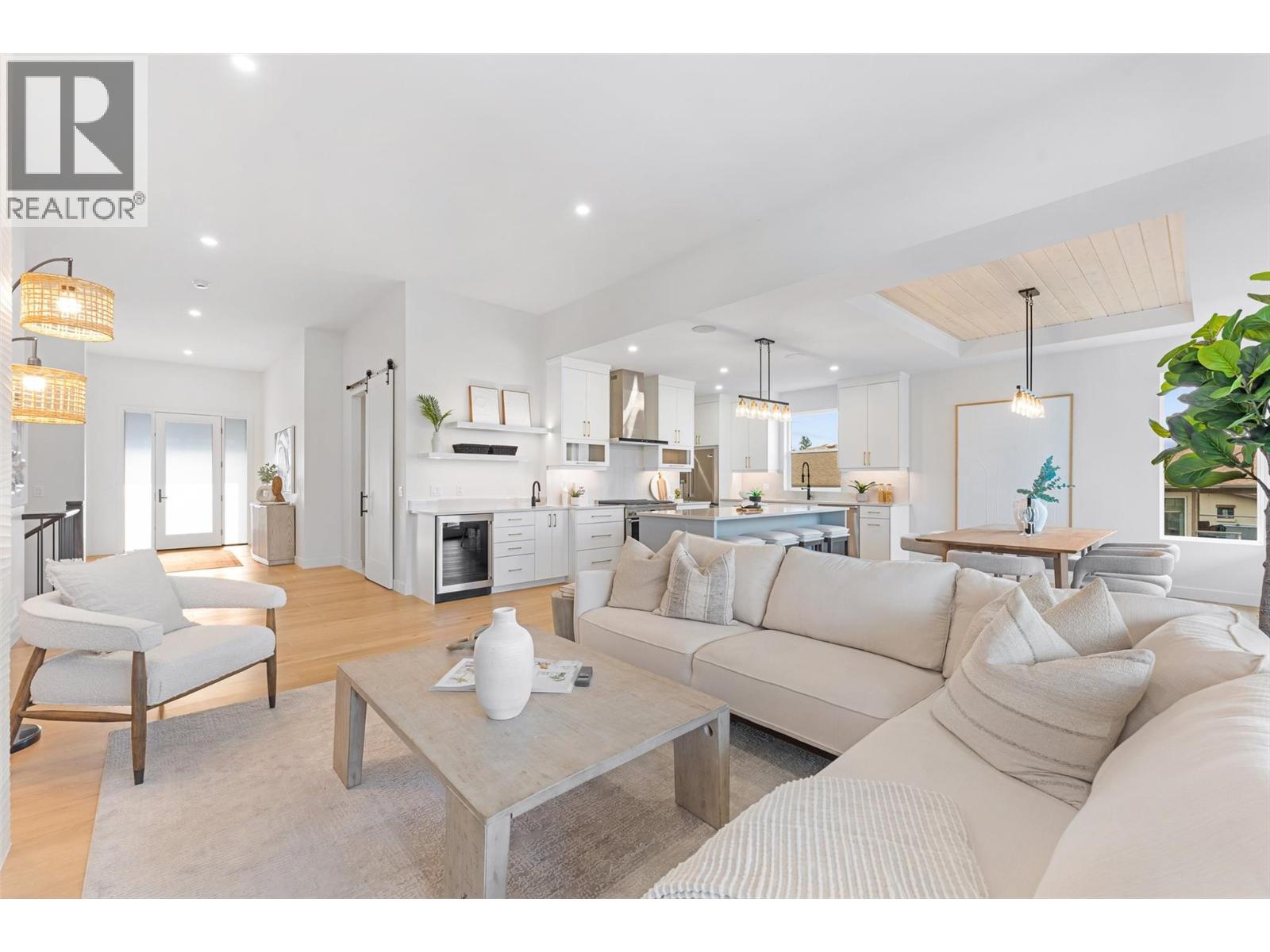 Priced to sell-Builder to pay applicable GST. New build with exceptional craftsmanship in Oyama. Located just steps from Kalamalka Lake, this brand-new 3 bedroom + den, 3 bath home blends modern design with quality construction in one of Lake Country’s most sought-after enclaves. Built by an elite local builder, every detail has been carefully curated—from wide-plank hardwood and heated tile floors to soaring ceilings and expansive windows that frame unobstructed lake and mountain views. The open-concept main level features a chef-inspired kitchen with Electrolux appliances, quartz surfaces, custom cabinetry, and a servery with wine fridge. A floor-to-ceiling fireplace anchors the living room, while the dining area flows seamlessly to a covered deck with built-in speakers and glass railing—perfect for entertaining or unwinding with panoramic views. The primary suite offers a private deck walkout, spa-like ensuite with freestanding tub and oversized shower plus a custom walk-in closet. The lower level continues the thoughtful design with a spacious recreation room, wet bar, theater, two guest bedrooms, and direct access to a covered patio and landscaped yard. Spacious yard with plenty of room to accommodate a pool. With an oversized double garage (24x24), RV/boat parking, and a cul-de-sac setting in a family-friendly neighborhood, this home combines craftsmanship, comfort, and the lifestyle of lakeside Okanagan living. (id:26472)