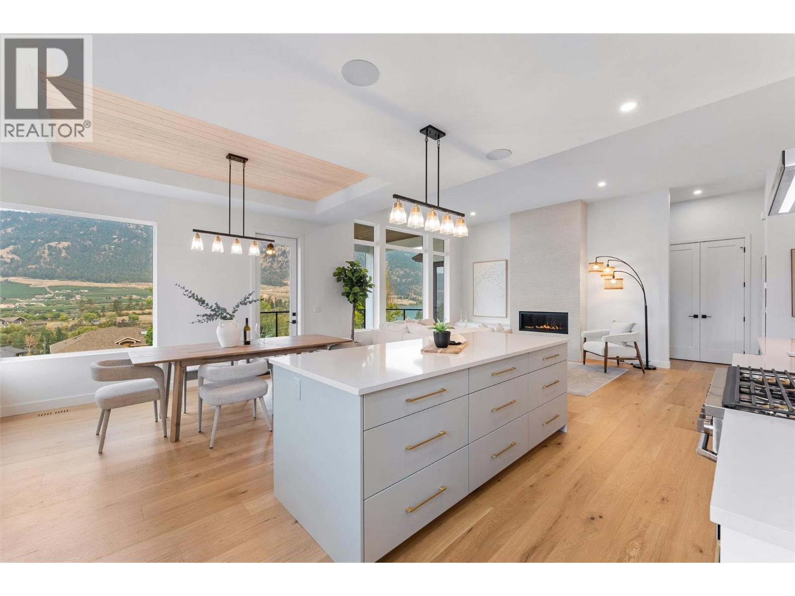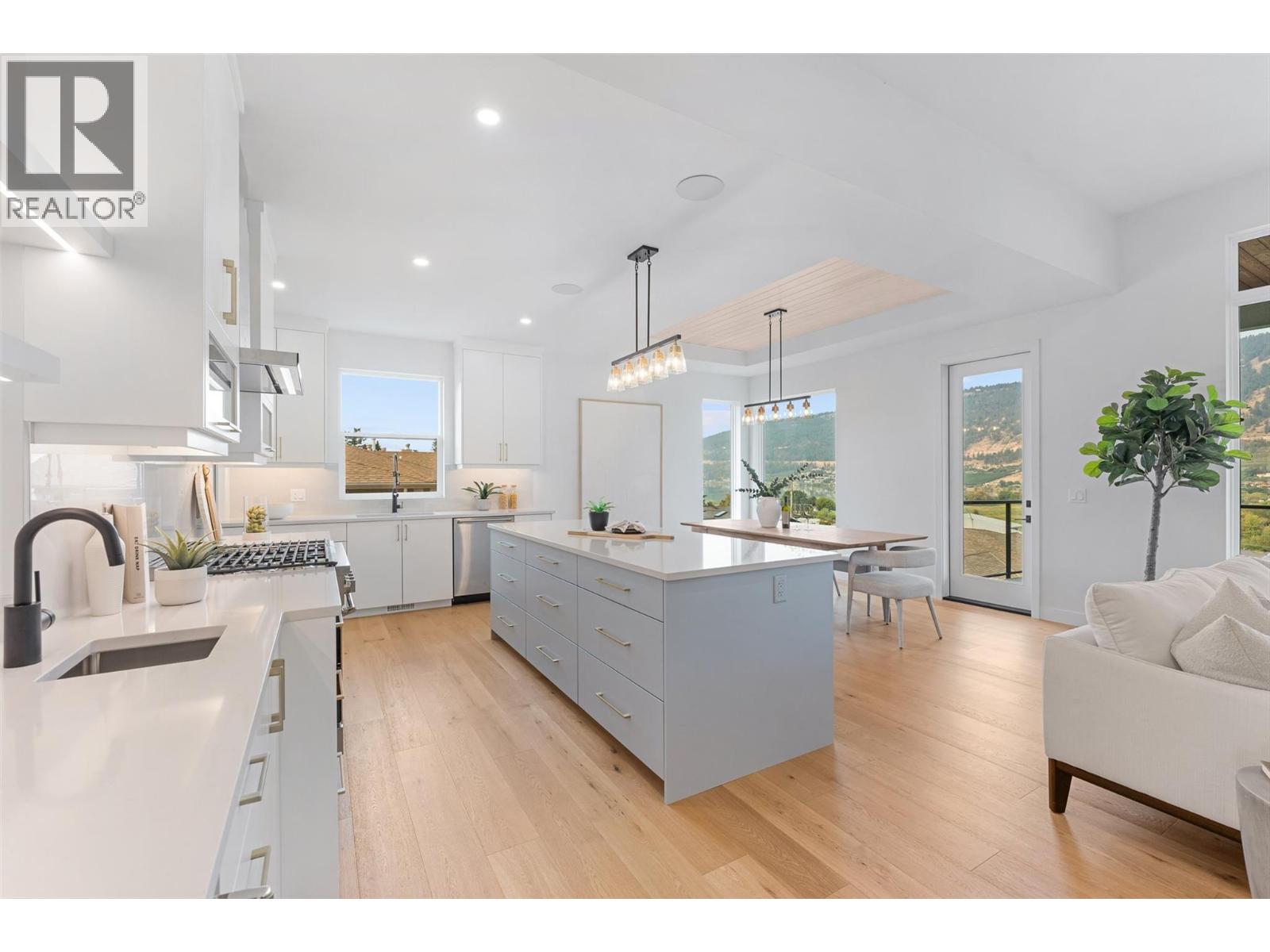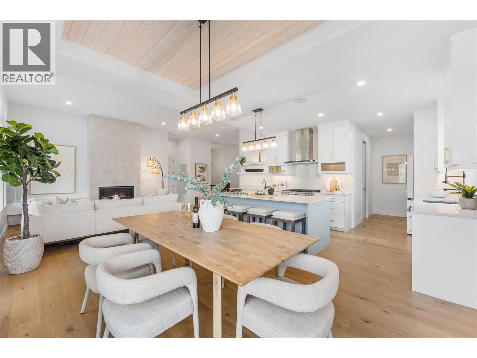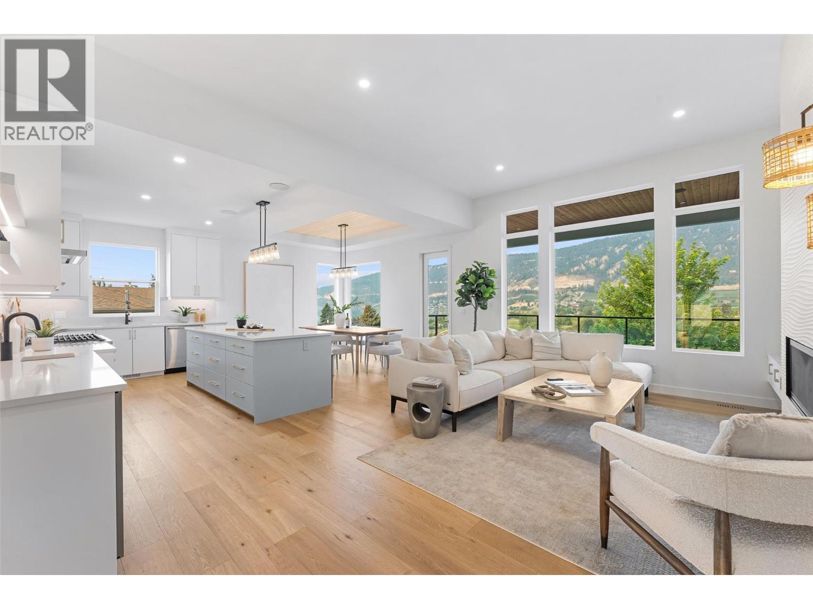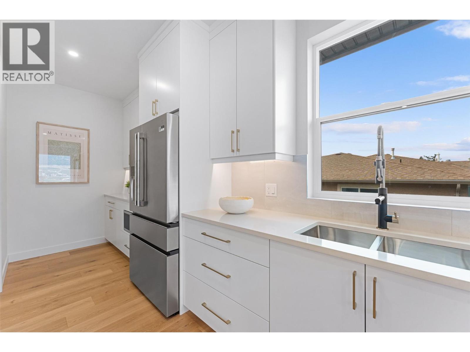 Priced to sell-Builder to pay applicable GST. New build with exceptional craftsmanship in Oyama. Located just steps from Kalamalka Lake, this brand-new 3 bedroom + den, 3 bath home blends modern design with quality construction in one of Lake Country’s most sought-after enclaves. Built by an elite local builder, every detail has been carefully curated—from wide-plank hardwood and heated tile floors to soaring ceilings and expansive windows that frame unobstructed lake and mountain views. The open-concept main level features a chef-inspired kitchen with Electrolux appliances, quartz surfaces, custom cabinetry, and a servery with wine fridge. A floor-to-ceiling fireplace anchors the living room, while the dining area flows seamlessly to a covered deck with built-in speakers and glass railing—perfect for entertaining or unwinding with panoramic views. The primary suite offers a private deck walkout, spa-like ensuite with freestanding tub and oversized shower plus a custom walk-in closet. The lower level continues the thoughtful design with a spacious recreation room, wet bar, theater, two guest bedrooms, and direct access to a covered patio and landscaped yard. Spacious yard with plenty of room to accommodate a pool. With an oversized double garage (24x24), RV/boat parking, and a cul-de-sac setting in a family-friendly neighborhood, this home combines craftsmanship, comfort, and the lifestyle of lakeside Okanagan living. (id:26472)