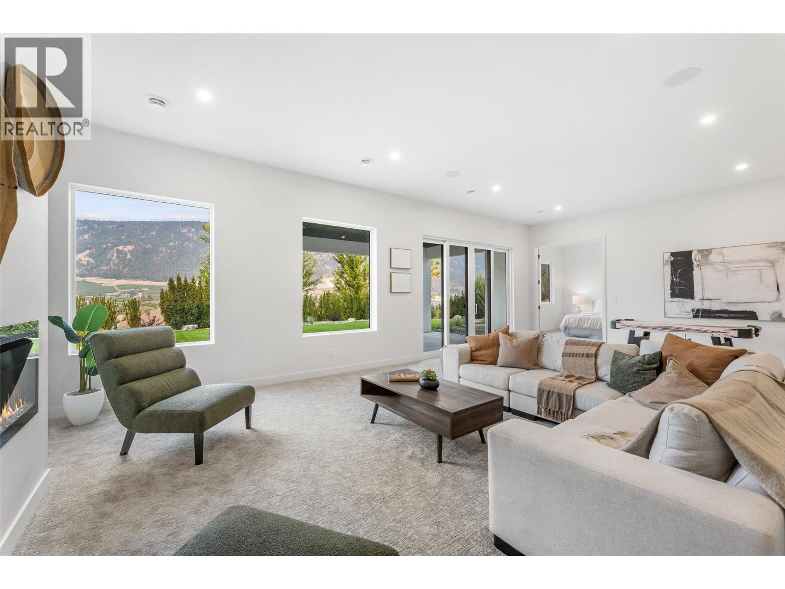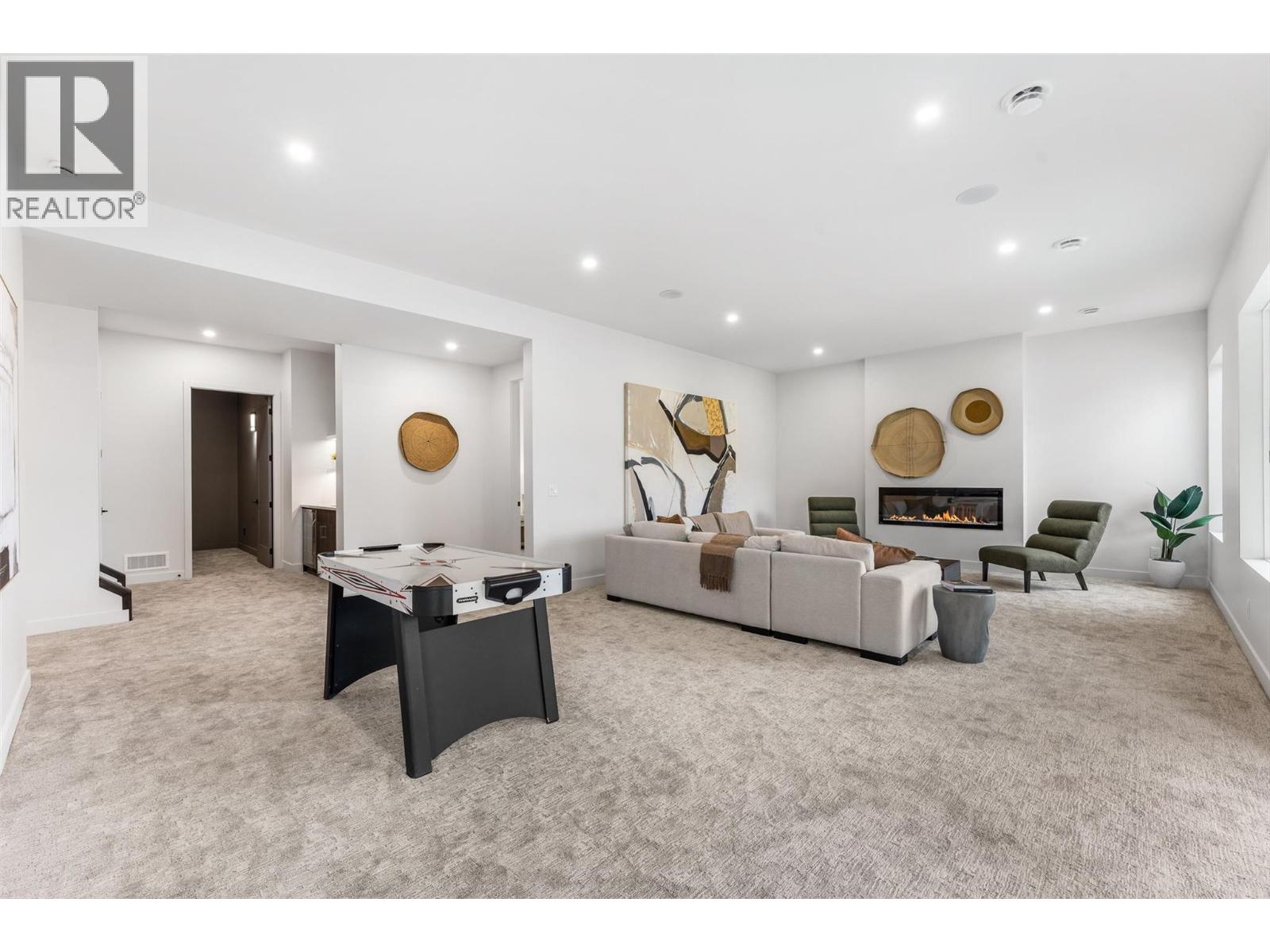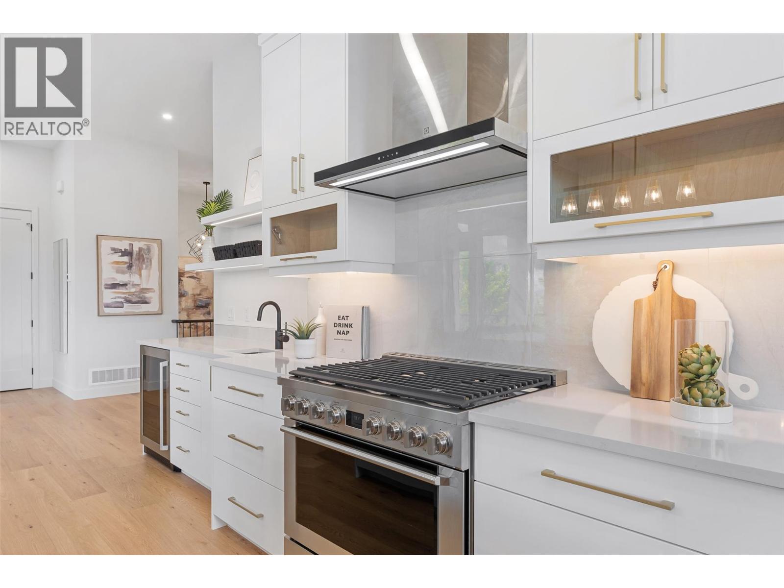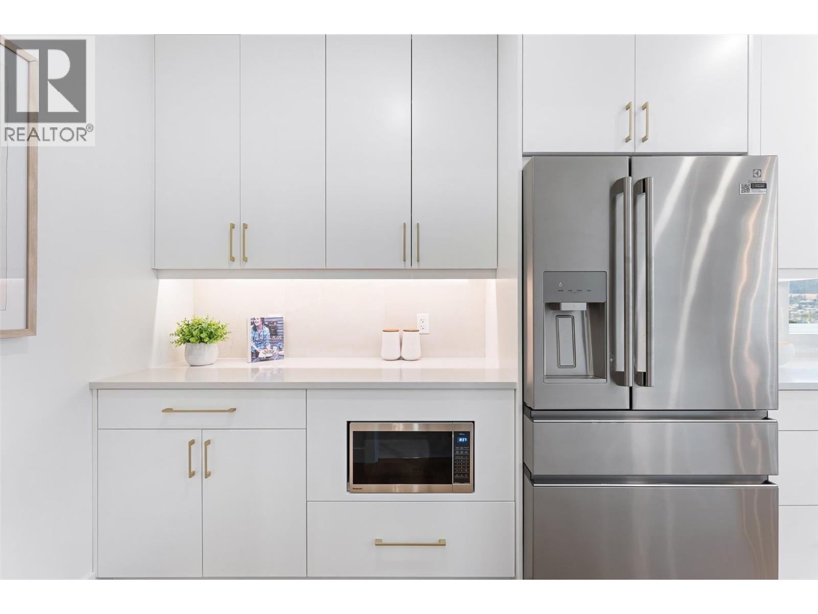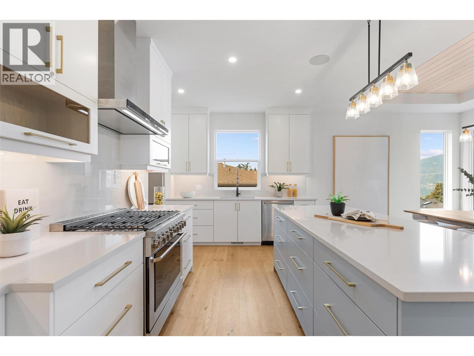 Priced to sell-Builder to pay applicable GST. New build with exceptional craftsmanship in Oyama. Located just steps from Kalamalka Lake, this brand-new 3 bedroom + den, 3 bath home blends modern design with quality construction in one of Lake Country’s most sought-after enclaves. Built by an elite local builder, every detail has been carefully curated—from wide-plank hardwood and heated tile floors to soaring ceilings and expansive windows that frame unobstructed lake and mountain views. The open-concept main level features a chef-inspired kitchen with Electrolux appliances, quartz surfaces, custom cabinetry, and a servery with wine fridge. A floor-to-ceiling fireplace anchors the living room, while the dining area flows seamlessly to a covered deck with built-in speakers and glass railing—perfect for entertaining or unwinding with panoramic views. The primary suite offers a private deck walkout, spa-like ensuite with freestanding tub and oversized shower plus a custom walk-in closet. The lower level continues the thoughtful design with a spacious recreation room, wet bar, theater, two guest bedrooms, and direct access to a covered patio and landscaped yard. Spacious yard with plenty of room to accommodate a pool. With an oversized double garage (24x24), RV/boat parking, and a cul-de-sac setting in a family-friendly neighborhood, this home combines craftsmanship, comfort, and the lifestyle of lakeside Okanagan living. (id:26472)