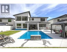 Step into this one of a kind modern residence where thoughtful design meets effortless luxury. Nestled on a quiet cul de sac, this ideally shaped lot allows the main living area to showcase the expansive, resort-style backyard framing a lavish, sparkling pool with waterfall, kitchen pass through, multiple patio areas, and manicured lawns and gardens. The main level’s expansive open concept layout is both inviting and functional, perfectly balancing everyday comfort with ease of entertaining. At the heart of the home is a chef inspired kitchen featuring pass through windows, high end appliances, an oversized quartz island, two wine fridges, built in wall ovens, a beverage station, a side by side refrigerator, and a true prep kitchen. Upstairs, you’ll find three generously sized bedrooms including a luxurious primary suite with a walk in closet and a spa like ensuite complete with a freestanding tub, glass shower, and heated floors. A flexible rec area with a wet bar rounds off this level, ideal for lounging or cozy TV nights. Whether you're welcoming extended family or looking for rental income, the bright, fully self contained one bedroom legal suite is thoughtfully located above the garage providing both privacy and separation from the main home. This exceptional home is complete with an expansive driveway and a triple car garage, all set on a newly developed, peaceful cul de sac.. (id:26472)