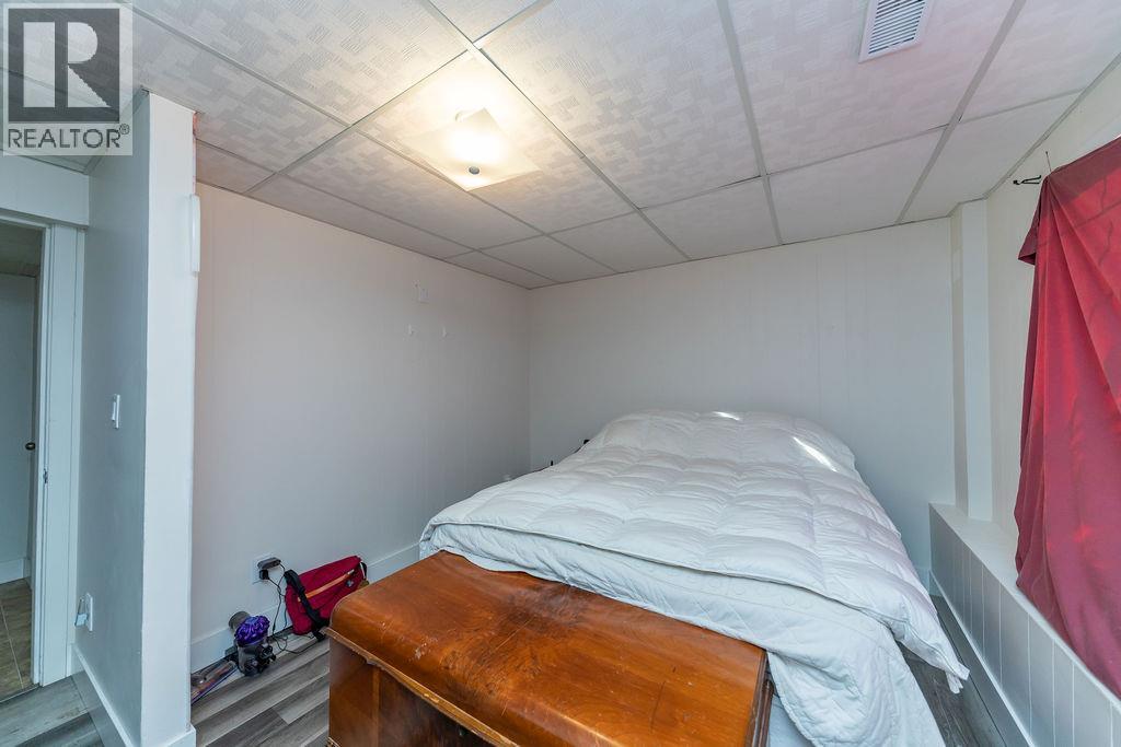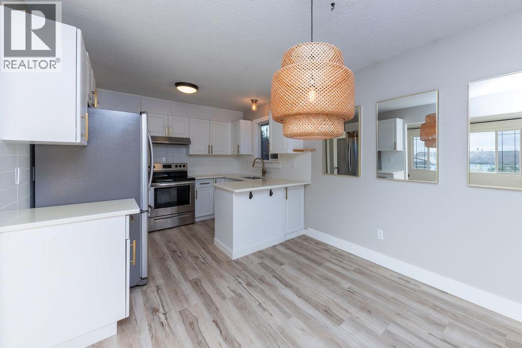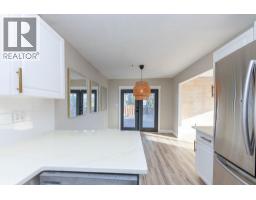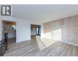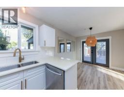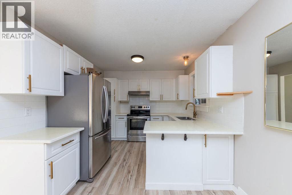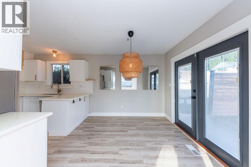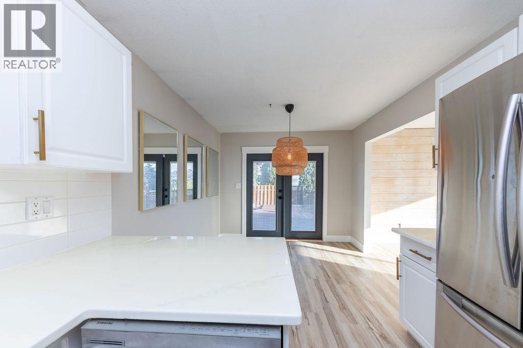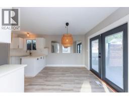 Beautifully updated starter home situated on a spacious corner lot at the edge of a quiet cul-de-sac. The main floor features three bedrooms, a refreshed bathroom, and a newly renovated kitchen with modern cabinets and fresh paint. Just off the kitchen is a bright dining area with French doors opening to a large, private deck—perfect for relaxing or entertaining. The living room offers newer flooring and an expansive front window that fills the space with natural light and views. The finished basement includes a convenient mini-kitchen, a bright bedroom, and a generous rec room, providing plenty of space for guests or family. (id:26472)