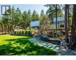 A private, park-like 9.35-acre retreat in the sought-after lakeside community of Carr’s Landing. Gated and meticulously maintained, this one-of-a-kind property features a stunning 3-bedroom main home with sleek, modern interior finishing and a European spa-inspired primary ensuite. The architecture blends West Coast, industrial, and contemporary design with expansive windows, curated outdoor spaces, and seamless indoor-outdoor flow. The legal 2-bedroom carriage house above the detached garage offers stylish guest accommodation with a distinct Tofino vibe. Outdoors, enjoy a serene inground pool, intimate garden courtyards, architectural landscaping, and a unique outdoor root/wine cellar — all designed for lifestyle and entertaining. Whether you’re relaxing in the sun, hosting friends, or simply taking in the natural surroundings, this property is a true sanctuary. A rare opportunity to own a legacy estate where privacy, style, and nature converge in one of the Okanagan’s most desirable communities. (id:26472)