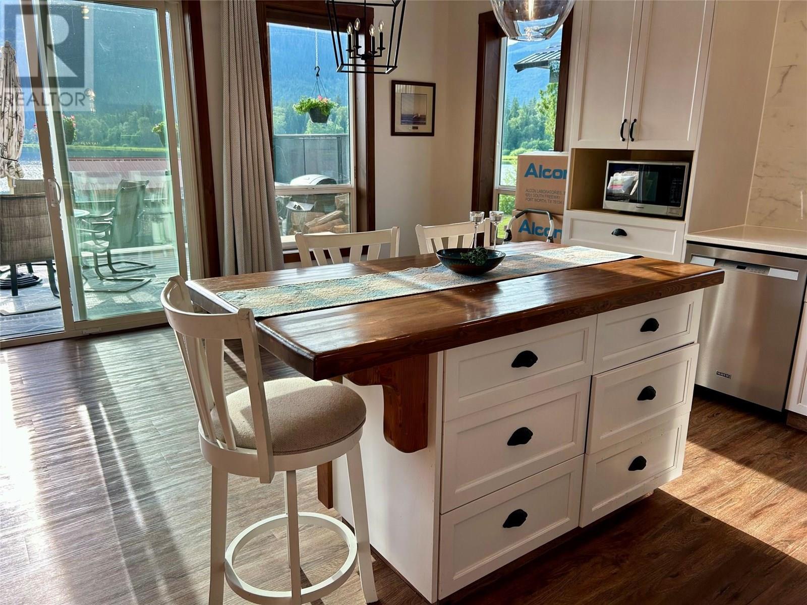 Welcome to the best spot on Sugar Lake! This lakefront cabin is where high end finishes meet panoramic beauty. Located in Sugar Lake Recreational Properties, just 1.5 hrs from Kelowna International Airport & 1 hr from Vernon. This 2 bed, 2 bath cabin is positioned on arguably the best lot in the community: a rare corner location with extra space, parking & unobstructed panoramic views of Sugar Lake, surrounding mountains, & the valley. No expense was spared in this thoughtfully designed retreat.The open concept main floor boasts a beautiful kitchen with quartz counters, a stylish bar, built in lighting, dining area & living room with a wood stove. A wall of windows floods the space with natural light & frames the breathtaking scenery. Step through the large patio doors onto the covered deck, perfect for relaxing, rain or shine. The lower level features a second living area, 2 bedrooms, a 2nd full bathroom w/ laundry & direct walk out access to the lake, ideal for paddle boarding, kayaking, or simply enjoying the beach. Ownership includes access to exceptional amenities: private swimming beach, boat launch, boat slip rentals, a lodge & bistro & year round access. The cabin’s location and design make it the ultimate getaway w/ excellent rental potential when not in use. Monthly strata fee is $248 & covers water, sewer, garbage, & common property maintenance. Whether you're looking for a personal lakeside retreat or a high demand rental property, this cabin checks all the boxes. (id:26472)