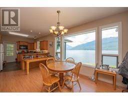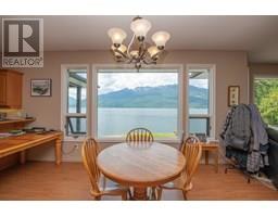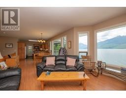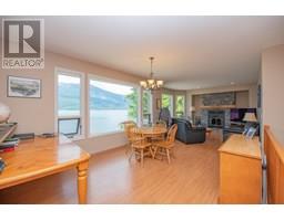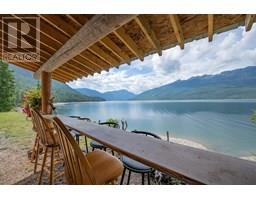 First time on the market—welcome to the legendary O'Brien's on the Lake, a rare and breath-taking opportunity with endless possibilities. This stunningly maintained, income-producing property features three beautifully handcrafted log cabins, each radiating rustic charm and timeless craftsmanship. The main home includes a spacious rental suite with 3 bedrooms and a flex space, while the upper level offers 2 additional bedrooms and an open-concept living that seamlessly combines the living room to kitchen and out to a large covered deck—perfect for soaking in the panoramic views of Arrow Lake and the majestic Saddle Mountain range beyond. A massive 40x40 Quonset shop with 14’ ceilings provides ample workspace and storage for all your projects and toys. The paved driveway leads to your own private boat launch and an incredible 710' of pristine lakefront, making this a true waterfront paradise. Whether you’re looking to live, invest, or develop, this one-of-a-kind lakeside retreat offers unmatched beauty, potential, and privacy. (id:26472)