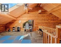 Welcome to 1725 Keloka Drive, a stunning log home that exudes rustic charm and is crafted with premium materials. This 2.5-story, 3,245 sq. ft. residence showcases exceptional design and superior craftsmanship, nestled in the heart of Rose Valley on a .29-acre lot. The main floor offers two guest bedrooms, a bathroom, an open-concept kitchen, and a striking floor-to-ceiling stone fireplace perfect for cozy winter evenings. Step outside to the expansive covered patio and enjoy the hot tub beneath a starry sky. A spiral staircase leads to a lofted flex space, a spacious primary suite with a 3-piece ensuite, and a private balcony with serene treetop views. The lower level features a generous in-law suite with one bedroom, one bathroom, a separate entrance, laundry, kitchen, carport parking, and ample storage—ideal for multigenerational living. Additionally, the property includes a 30x16 insulated shop with 220V power, perfect for car enthusiasts or hobbyists, and a horseshoe driveway to accommodate extra guests, RVs, and toys. Just minutes from Rose Valley Elementary, children can easily walk or bike to school. The home also offers modern upgrades, including a 2021 heat pump/AC system, a 2020 high-efficiency furnace, a brand-new hot water tank, and a recent city sewer connection. Embrace the blend of country charm and modern city convenience schedule your private showing today! (id:26472)