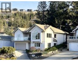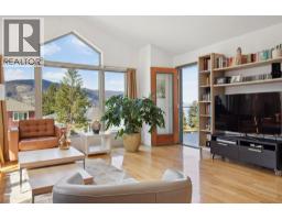 Located in the prestigious northern part of Magic Estates, this architecturally designed 4 bed 3 bath home offers gorgeous views of Okanagan Lake and the mountains. Designed to maximize natural light, it features oversized windows on all sides, bathing every room in daylight and offering stunning views from nearly every angle. With far more windows than a typical home, the design ensures a bright, open atmosphere throughout. Custom built with quality and longevity in mind, the home features a durable cement tile roof, offering fireproofing, exceptional thermal mass, and superior insulation for year-round comfort and energy efficiency. The spacious foyer leads to Douglas fir stairs with glass railings, opening to the upper level. Solid hardwood and ceramic tile floors provide timeless elegance. The living area boasts a cathedral ceiling, a gas stove on a stone feature wall, and panoramic lake and mountain views. A 180 sq. ft. covered balcony is perfect for relaxation. The kitchen offers ample counters, a gas range, and custom-built cabinetry for style and functionality. The dining room opens to a red cedar deck and tranquil low maintenance yard with mature trees. The lower level includes a bright office or studio with large windows, a spacious gym that can double as a theater, music room, or flex space, a 4th bed, a 3rd bath, and laundry. Offered for sale for the first time, this home reflects exceptional care and attention to detail, with easy access to Knox Mountain Park. (id:26472)