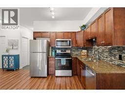 $502.04 MonthlyTop floor, quiet executive condo located in the desirable Pinnacle Pointe Golf Resort on the premier Okanagan golf course in Quail Ridge. Just minutes from Kelowna International Airport, UBCO, transit, shopping, and dining, this location offers exceptional convenience and lifestyle appeal. This is a prime investment opportunity with no rental restrictions, pet friendly and the popular amenity-rich building maintains strong occupancy for both short and long-term rentals. The stylish two-bedroom condo has been beautifully renovated and is truly move-in ready, featuring luxury vinyl plank and ceramic tile flooring throughout, granite countertops, solid wood shaker-style cabinetry, electric fireplace, and a brand-new deck. Extensive 2025 upgrades include a custom glass and stone backsplash, stainless steel Whirlpool refrigerator and over-the-range microwave, GE convection range, full-size Electrolux washer and dryer, modern LED lighting, spacious closet organizers with a walk-in pantry, new blinds, bi-fold doors, trim, faucets, and fresh paint throughout. In June 2025, a brand-new forced-air furnace and fan coil A/C unit, still under warranty was installed, providing year-round comfort and peace of mind. Strata fees include heat and cooling, and building amenities offer excellent value with a heated underground parking stall, bike storage, on-site security and building manager, fitness centre, and seasonal pool and hot tub, making this an affordable Okanagan lifestyle option. (id:26472)