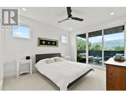 $250 MonthlyBuilt by well-respected Brentview Developments, this high-end townhouse features three floors of luxury. The superb location is only steps to Okanagan Lake, the Farmer's Market, parks, shopping, wine bars, events, mini breweries and marina. Your personal elevator awaits you at the end of the foyer to take you to the second floor where you will find a gorgeous open-concept kitchen, and a dining and living room space with large patio door accessing your 12X11 covered patio. The powder room is tucked discreetly in a corner. ""Press 3"" for the top floor to access your well-appointed and beautifully designed sleeping quarters. The primary bedroom has a three piece ensuite and large walk-in closet. The unique feature of this floor is a massive covered deck with views galore and privacy. 12X20 will give you plenty of space to create and furnish your private oasis or an entertainment eating area. Outdoor space can be accessed two ways, through either the primary patio door or the second door in the elevator). The craftsmanship is impeccable, featuring quartz counters, high-end appliances , high efficiency heating/ac with HRV system, 9 ft ceilings, IFC construction, TGI floors, Kohler fixtures, custom designed cabinets, outside gas hook up for BBQ, large tandem garage 20' X 10'9. Massive 5' height crawl space for additional storage. Photos taken from previous listing. Measurements taken from Matterport. Call your Realtor ® or the listing agent today! (id:26472)