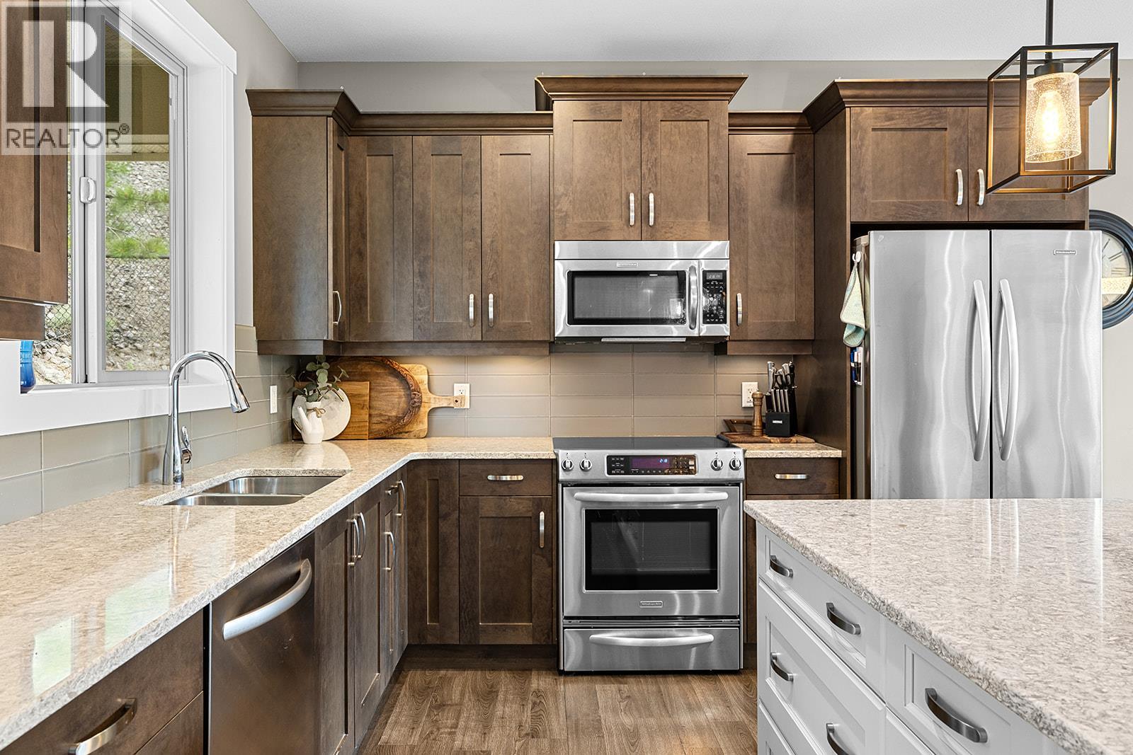 Welcome to 190 Wilden Ridge Drive — a rare Skylands gem offering extra on-site parking and surrounded by the natural landscape rather than neighbouring homes, providing a level of privacy rarely found in Wilden. Here, nature and luxury meet in perfect harmony. The main living level boasts bright open-concept spaces with three bedrooms and two bathrooms, a stylish kitchen with quartz countertops and modern two-toned cabinetry, and a living room and walkout patio pre-wired for a sound system — perfect for Okanagan entertaining. Downstairs, you’ll find a spacious legal 1-bedroom, 1-bathroom suite with a separate entrance, ideal for multigenerational living or rental income. Highlights include a double garage with built-in shelving, central vacuum system, front and back irrigation, and raised garden beds ready for your green thumb. This stunning property sits on a private, low-maintenance .598-acre end lot, offering incredible outdoor potential. Bring your ideas — add a tranquil water feature, side garden, or kids’ play space! Enjoy being surrounded by scenic biking and walking trails, with endless hiking trails within a few hundred meters of your doorstep. Skylands in Wilden offers a peaceful lifestyle, only minutes from Glenmore’s shops, restaurants, schools, and a quick drive to downtown Kelowna, UBCO, and the airport. Experience the perfect balance of outdoor living and urban convenience — come discover the elevated lifestyle that Skylands in Wilden has to offer! (id:26472)