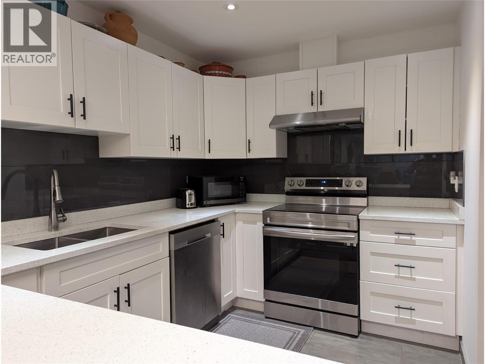 $373 MonthlyBeautifully renovated move-in ready home in a steel and concrete building. This 2 bedroom home has been updated with new engineered hardwood floors, stylish quartz counter tops, new cabinets, appliances and sink in the kitchen, a stand-alone bathtub and new vanity and tiles in the bright and modern bathroom. The balcony has been enclosed and the baseboards are all new. Nothing to be done but move in. The strata fees are reasonable and include hot water and shared laundry on each floor as well as the use of the hot tub and sauna as well as the building maintenance and the use of the social rooms, including a kitchen and meeting/art room. It is possible to rent an additional covered parking spot and an additional storage unit if required. Enjoy the advantages of this great location, very close to the Parkinson Recreation Centre, the Capri Mall and Orchard Park. Rentals allowed with no age restriction, no pets allowed. (id:26472)