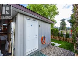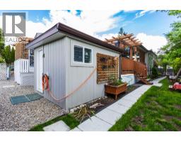 Welcome to this pristine and beautifully updated 2-bedroom, 2-bathroom home in Berkley Estates. Families Welcomed. Perfectly situated at the end of a quiet no-thru road, this home offers privacy with only one neighbor and stunning views of the mountains and a peek-a-boo lakeview from your oversized, partially covered south-facing deck—ideal for outdoor dining and relaxing. Inside, you'll find a thoughtful layout with bedrooms at opposite ends for added privacy. The spacious primary suite boasts a full ensuite bathroom with a luxurious jacuzzi tub. Enjoy the modern, fully updated kitchen featuring quartz countertops, a large island, stylish backsplash, newer cabinetry, stainless steel appliances, and ample pantry storage. The generously sized dining and living rooms are flooded with natural light and centered around a cozy gas fireplace—perfect for entertaining or quiet evenings in. Updates included: A/C & Hot Water Tank 2019, Roof & Windows 2015, Vinyl Flooring 2025, S/S Dishwasher & Microwave 2023, Tile & Freshly Painted 2023–2025, Poly-B Plumbing replaced 2025. Parking for 3 vehicles, Workshop: Included out back.Located just minutes from shopping, wineries, golf courses, and local services, Berkley Estates offers a vibrant and convenient lifestyle. 2 pets per household. Pad Rent is $610.00 per month (Includes water) Lease expires 2037. Don't miss this rare opportunity to own a move-in-ready home in a prime location with all the major updates already done! Measurements taken from I-Guide. (id:26472)