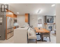 **SKI TIP NUMBER 202 – UPPER VILLAGE FULLY RENOVATED CORNER UNIT WITH MOUNTAIN VIEWS – TURN-KEY - FULLY FURNISHED - SLEEPS 8** Look no further, this 2 bedroom, 2 bathroom luxury suite offers ski in / ski out living, 2 ski lockers, underground parking. COMPLETELY RENOVATED and designed to include oversized heated tile flooring throughout, all new cabinetry, full size dishwasher rare to the building, Heier French door refrigerator, waterfall countertops, accent lighting, luxurious tiled bathrooms, painted throughout, LED pot lights and acoustic drapery in the primary bedroom. FURNISHING PACKAGE includes a king bed in the primary bedroom, two separate beds in the second bedroom with trundle pull out mattresses, king sized fold out couch in the living room, fully equipped kitchen, patio furniture and more. Your friends and family will forever be thankful that you snapped up with incredible property that truly allows a year round recreational getaway like no other walking distance to everything you have in mind. Pool access (water slides in the summer) and surrounded by coffee shops, Alto Restaurant, the T-Bar restaurant and located above the main lodge which offers a host of breakfast / lunch options. Act now and enjoy for a lifetime. STRATA FEES INCLUDE ALL UTILITIES. (id:26472)