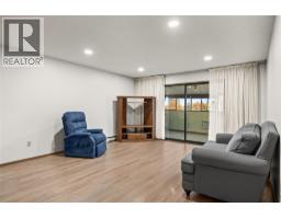 You will love living here at Springfield Manor a +55 community, no pets, quiet building and a great central location. Top Floor offers lessor noise as no occupants above unit, also 2 skylights offer more natural light. East facing sunroom to greet the morning sun as you look up onto Black Mountain views and a sunroom that is not too hot in the summer afternoons. 2 skylights for lots of natural light, primary bedroom /ensuite/ large closet and 2nd bedroom with adjacent 2nd full bathroom. Kitchen has newer counter top, newer laminate flooring throughout, laundry has pantry extra storage too. This unit offers wheelchair access as all doors for wheelchair allowance, that is if required. This is a well maintained building offering, presently hallways being freshly painted and new carpets being installed. 2 storage lockers (1 on the 3rd floor and the other off parkade) and 1 covered parking stall to secure entry at the elevator. Lots of guest parking. (id:26472)