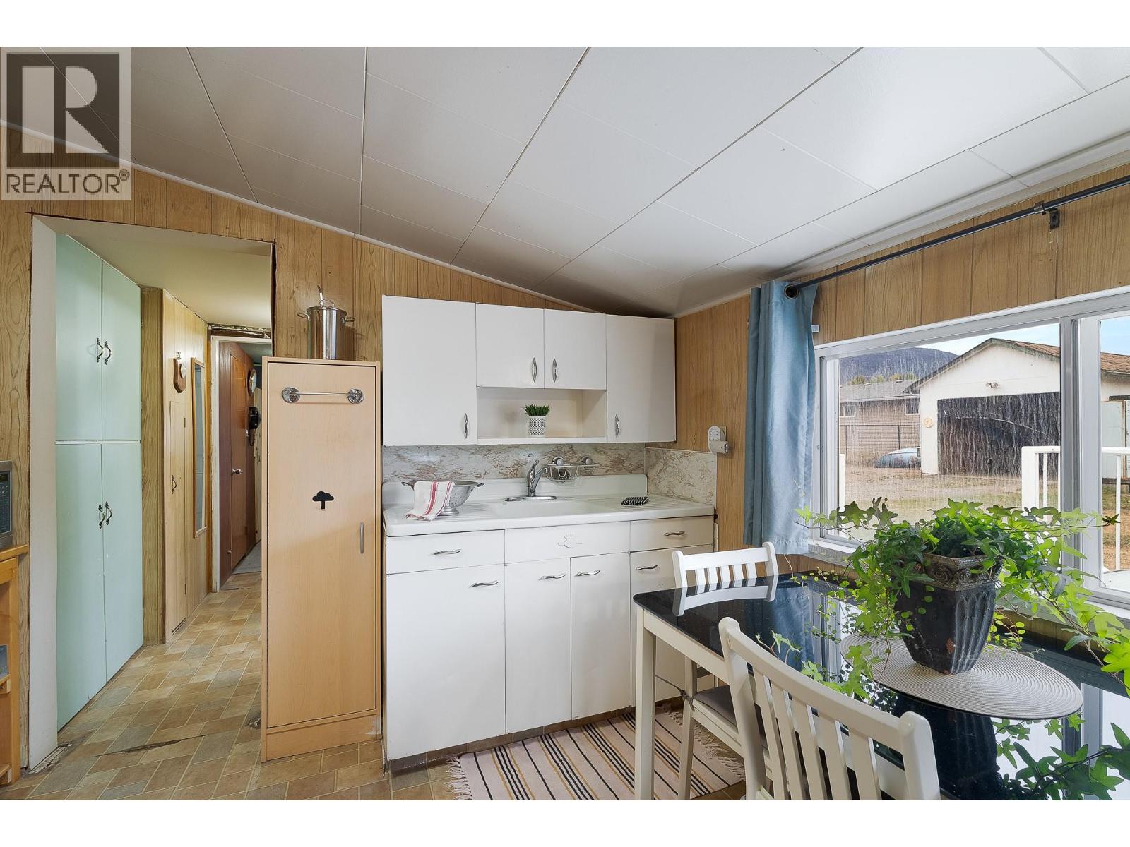 Step back in time with this 1925 character home filled with warmth and charm just 2.5 blocks from downtown Merritt! This well-loved home has truly stood the test of time, featuring a spacious living/dining area with beautiful wood trim ceilings and a cozy, vintage feel. The retro kitchen is a nostalgic delight with antique metal cabinets and the original porcelain sink and drainboard countertop. Enjoy your morning coffee on the inviting 4x18 covered front porch and unwind at day’s end on the 12x16 back yard deck, perfect for taking in the evening sunsets. Everything you need is on one level, making this an ideal home for first-time buyers or retirees wanting easy living close to town. Extras include a large laundry room with crawl space access, a fenced backyard, a 12x24 wired single garage, and a 12x18 metal shed for tools or hobbies. The oversized 73’8” x 130’ lot offers plenty of open parking and room for your RV. Recent updates: new roof (2021), natural gas furnace (2022), electric hot water tank (2022), and some vinyl windows (2004). ?? Priced to sell at $259,000—this home offers unbeatable value, character, and location. Book your tour today before it’s gone! (id:26472)